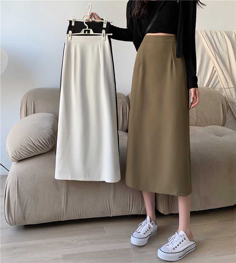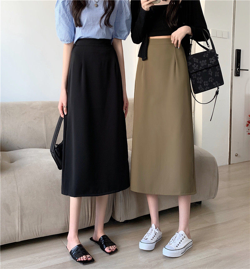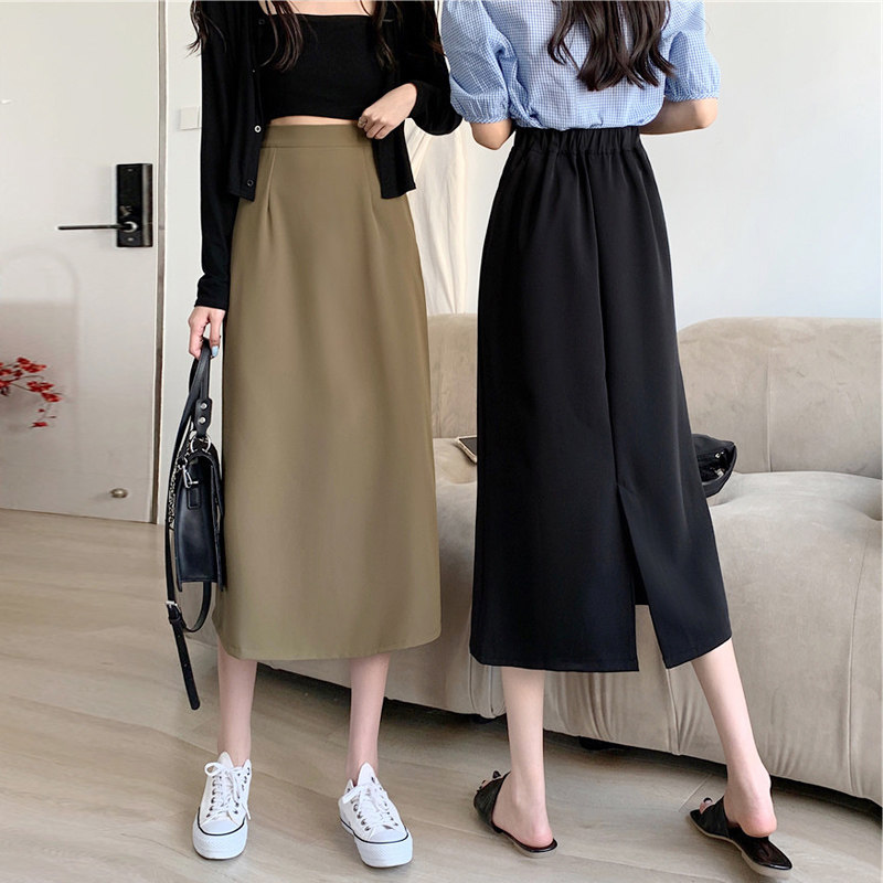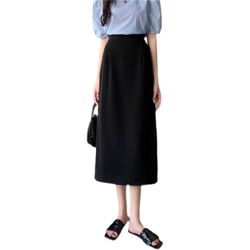Осенняя тонкая юбка, приталенный длинный костюм, коллекция 2022, большой размер, высокая талия, подходит для подростков, средней длины