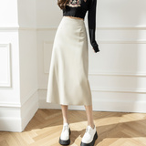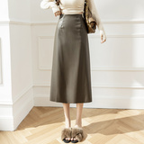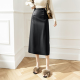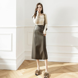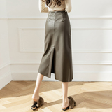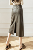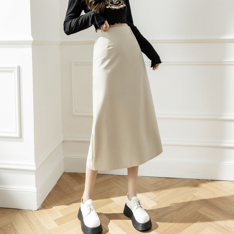 Полиуретановая осенняя приталенная длинная юбка, высокая талия, А-силуэт, средней длины