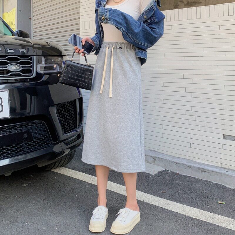 Осенняя юбка, длинная толстовка для отдыха, высокая талия, средней длины, в корейском стиле