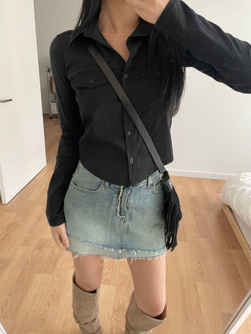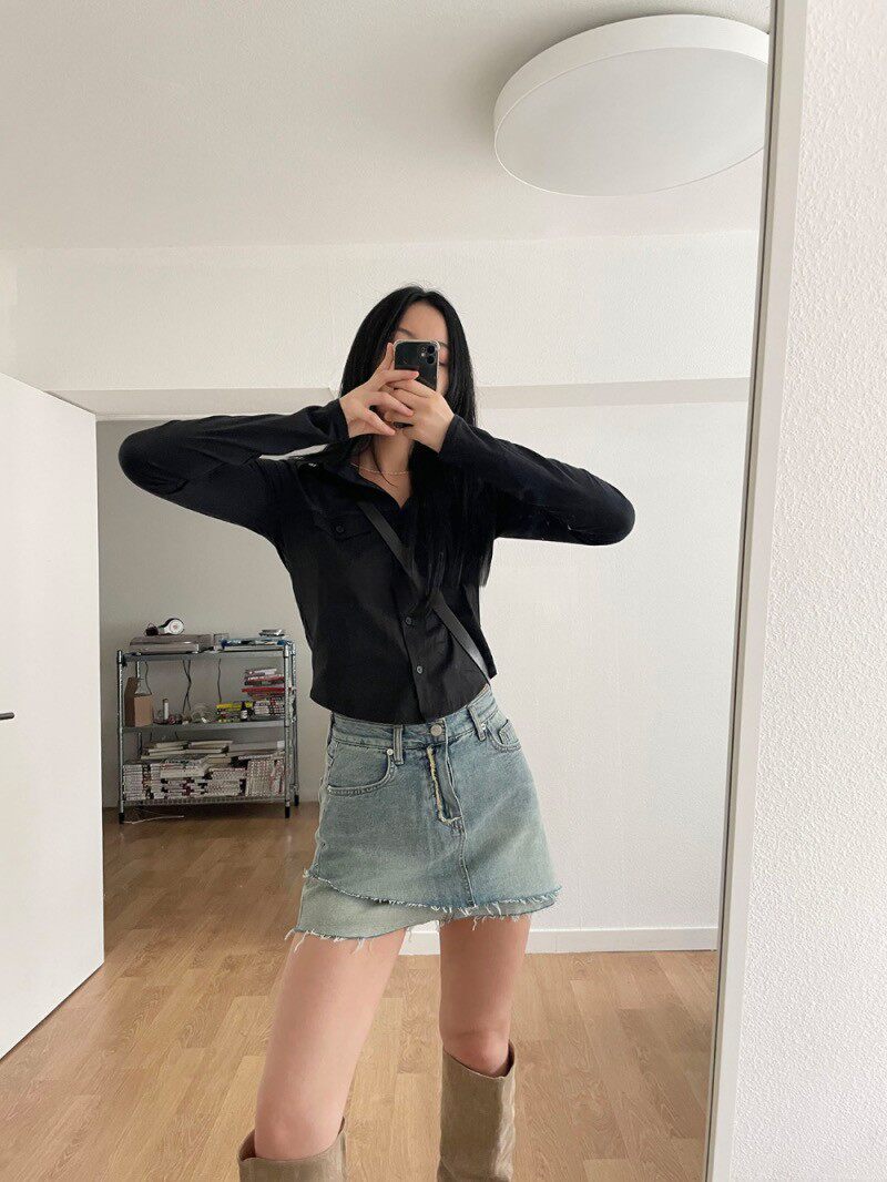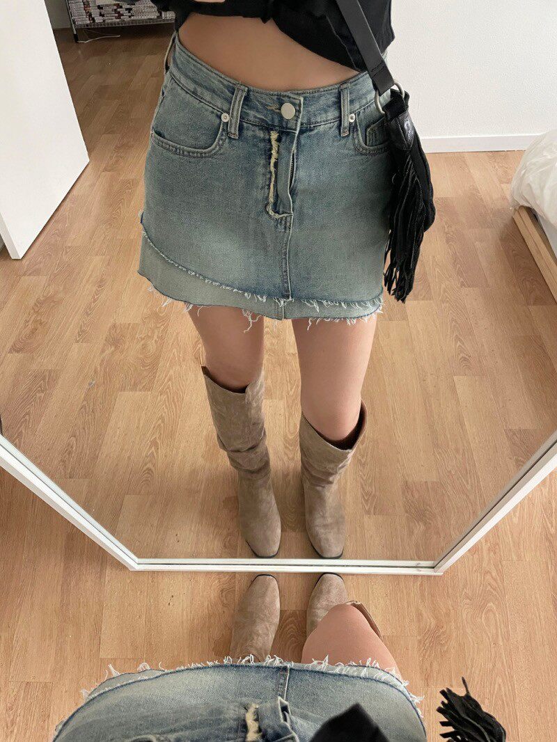 Уникальная ниша ретро-ретро без блокировки двойного дизайна A-Line Hip-Packing Slim и Wermatile Denim Skirt