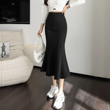 Черная осенняя длинная приталенная эластичная юбка, крой «рыбий хвост», высокая талия, облегающий крой, А-силуэт