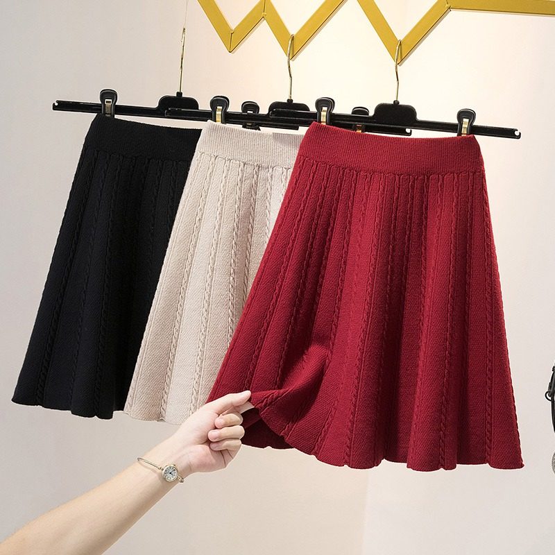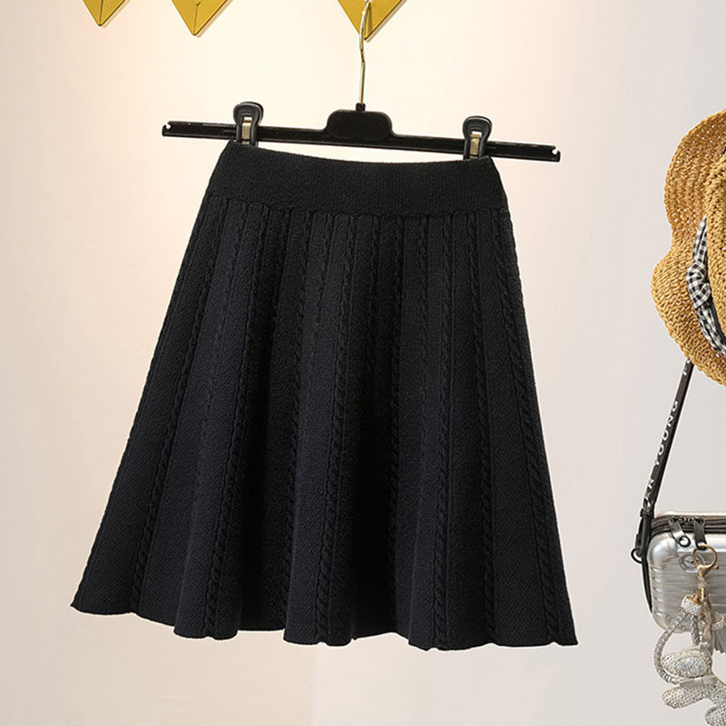 Демисезонная трикотажная юбка, большой размер, по фигуре, высокая талия, А-силуэт