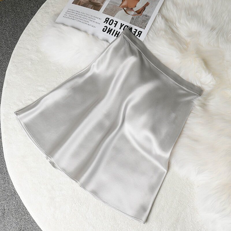 Шелковая элитная осенняя демисезонная юбка, поясная сумка, мини-юбка, изысканный стиль, высокая талия