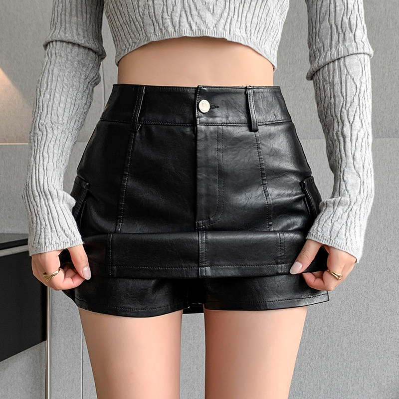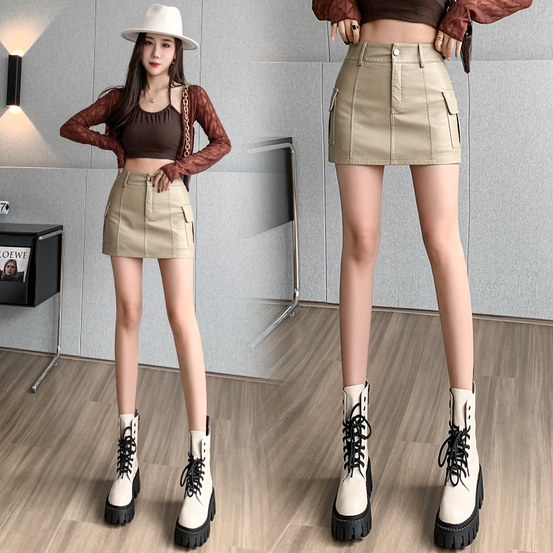Ретро весенняя юбка, полиуретановые штаны, в американском стиле, А-силуэт, 2023, с акцентом на бедрах