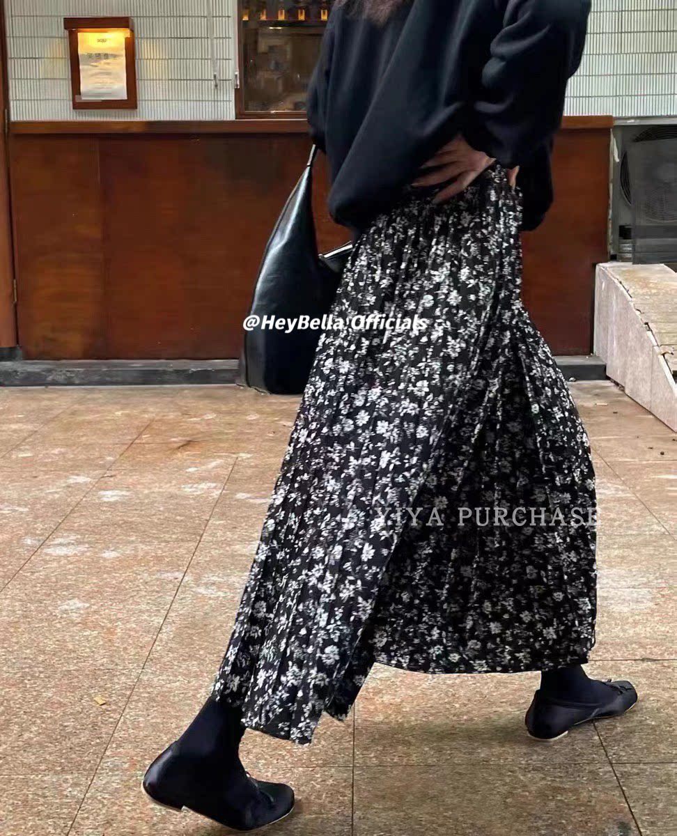 Южнокорейский товар, весенняя приталенная юбка, цветочный принт, высокая талия, А-силуэт