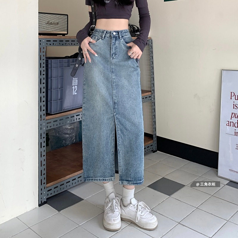 Осенняя ретро джинсовая юбка для школьников и студентов, высокая талия, длина миди