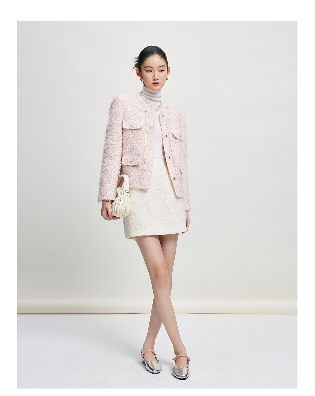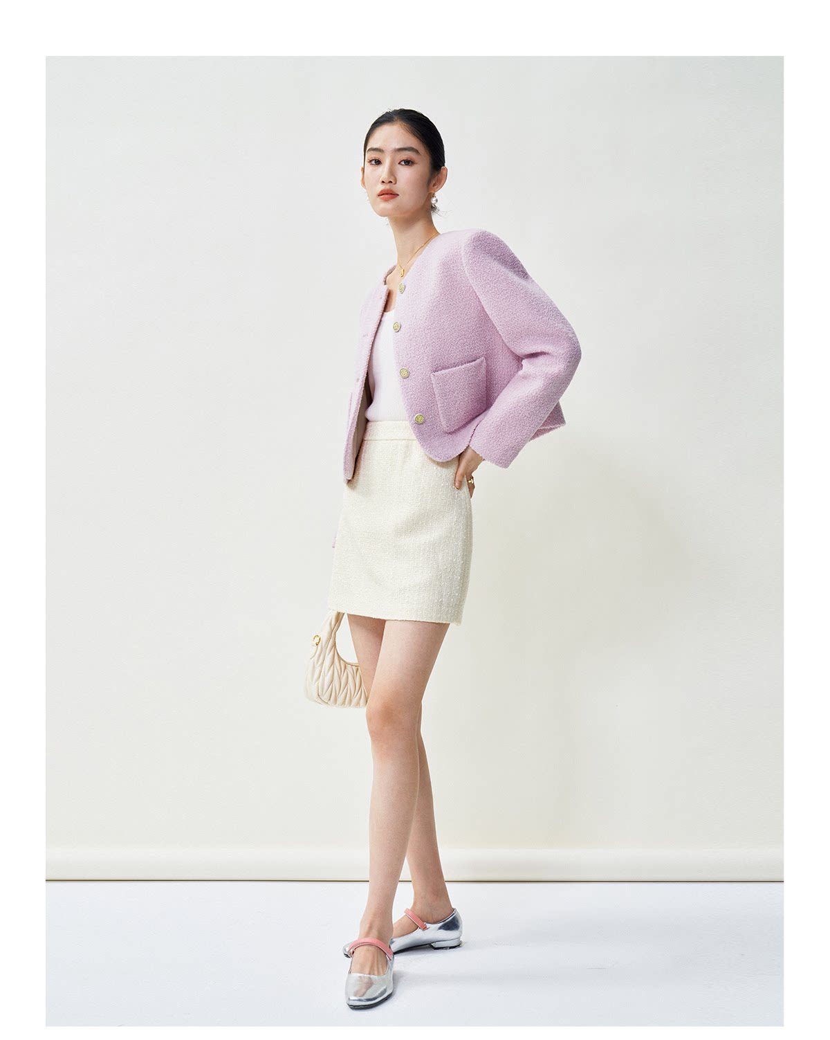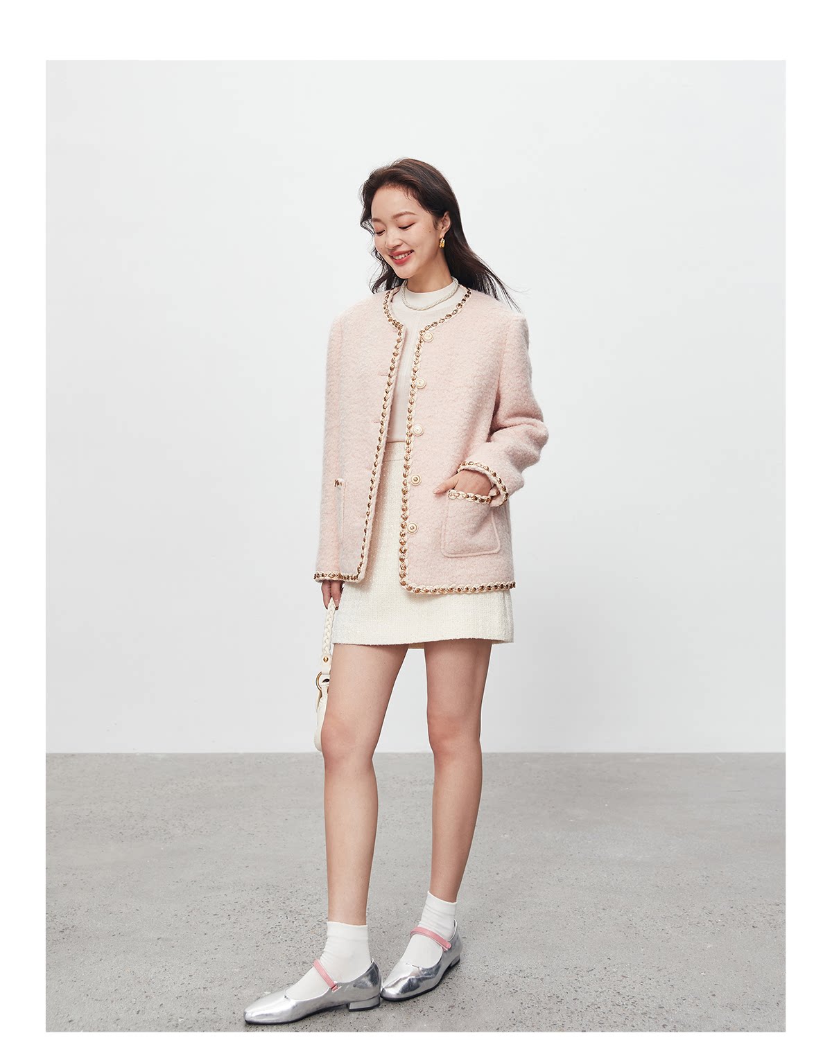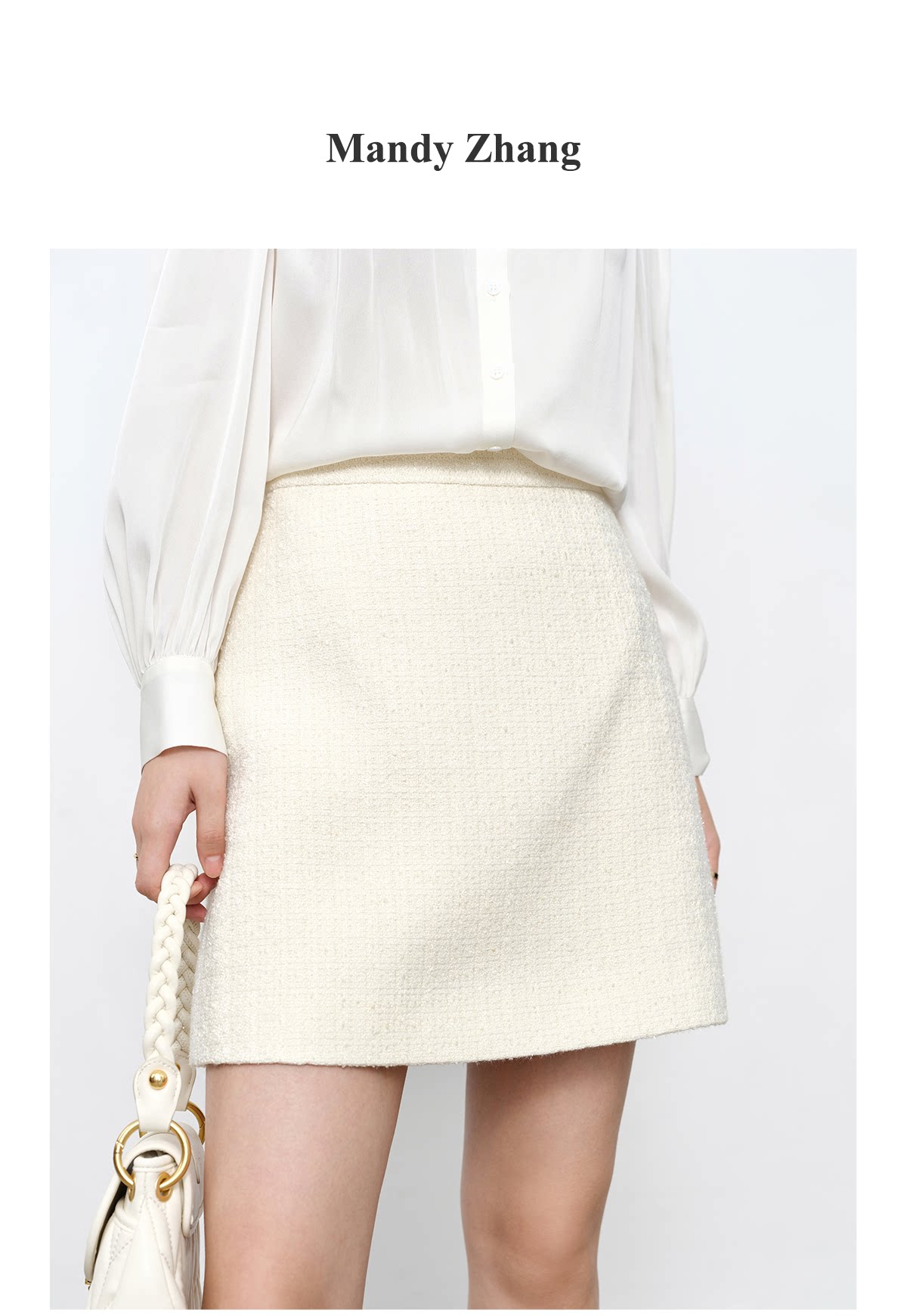 Белая дизайнерская юбка, в стиле Шанель, тренд сезона, А-силуэт