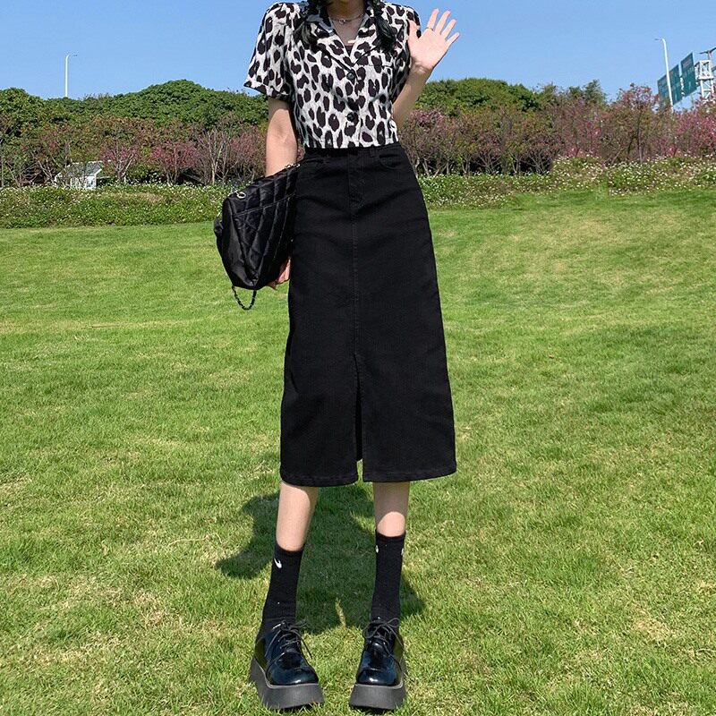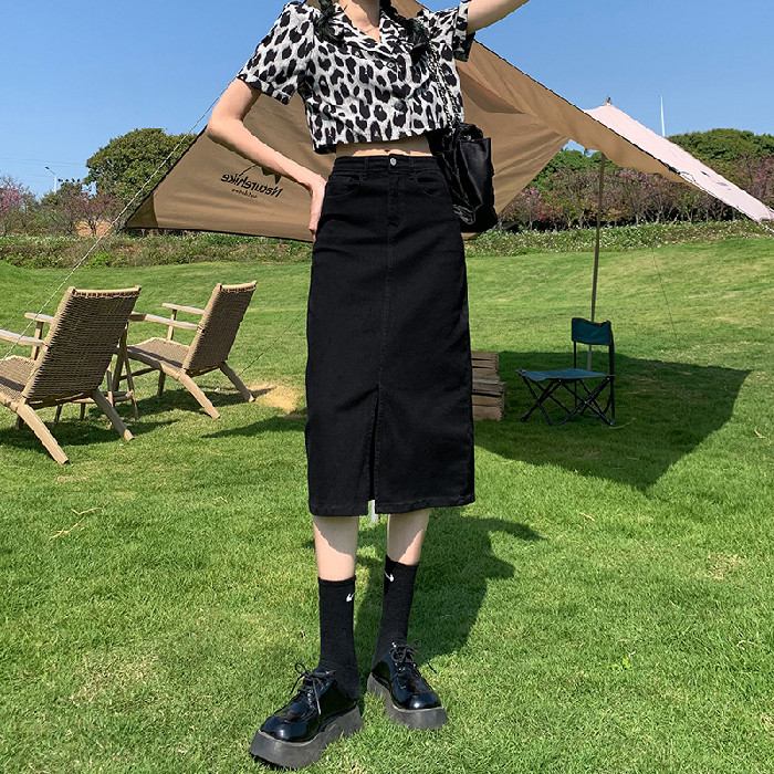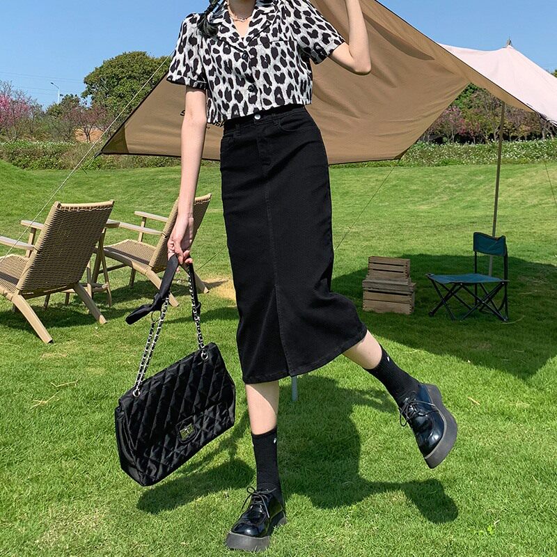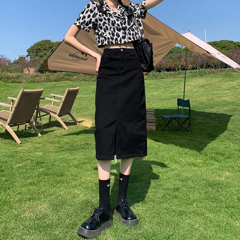Черная цветная весенняя длинная джинсовая юбка, высокая талия, коллекция 2023, подходит для подростков, средней длины, А-силуэт
