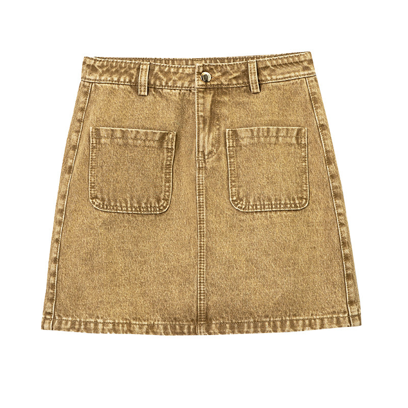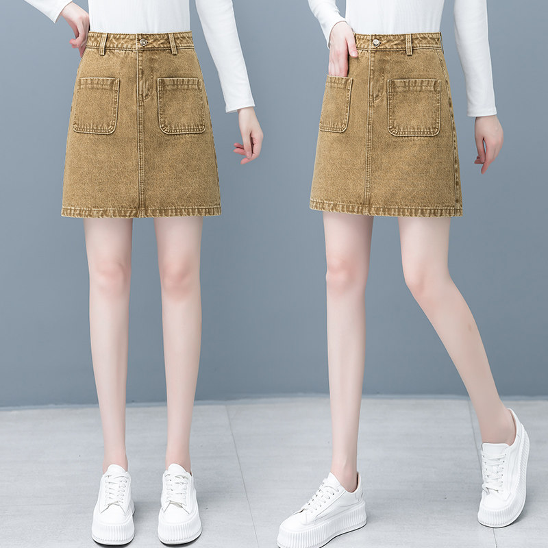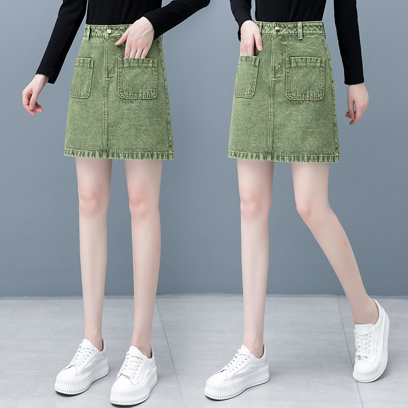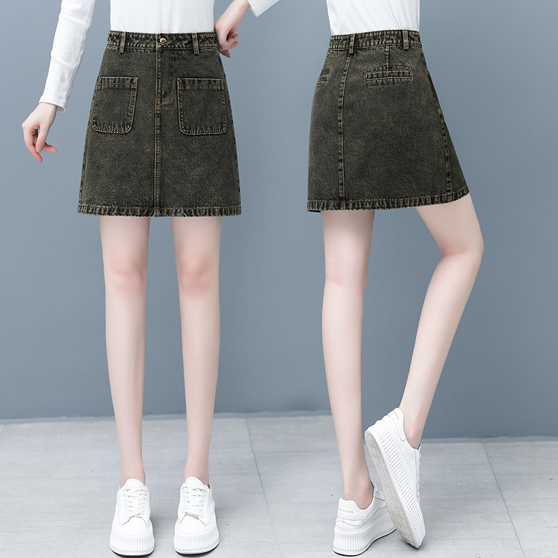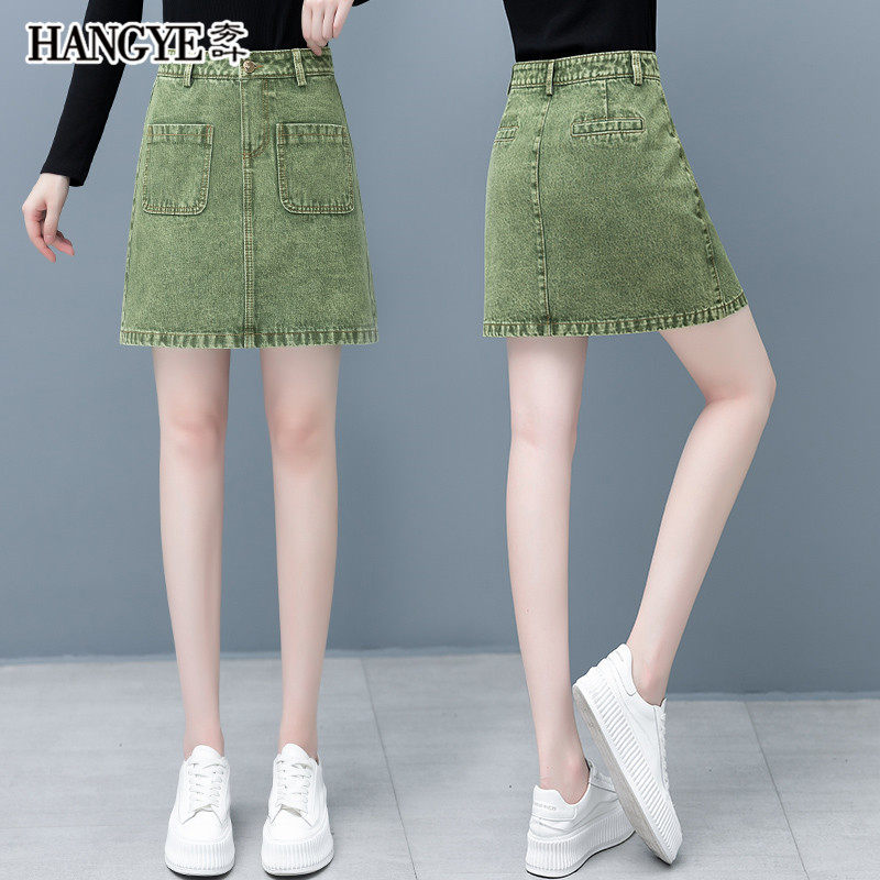 Весенняя осенняя джинсовая юбка, мини-юбка, коллекция 2022, высокая талия, А-силуэт, с акцентом на бедрах