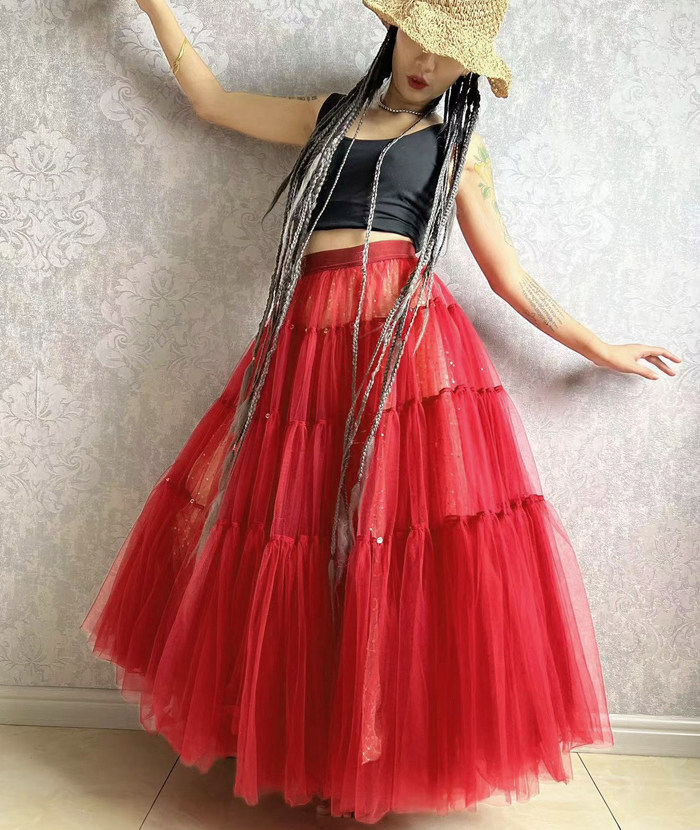 Один слой негабаритной марлевой юбки+внутренняя блестки+внутренняя подкладка (три слоя)