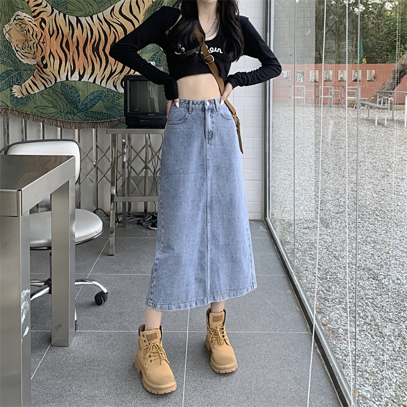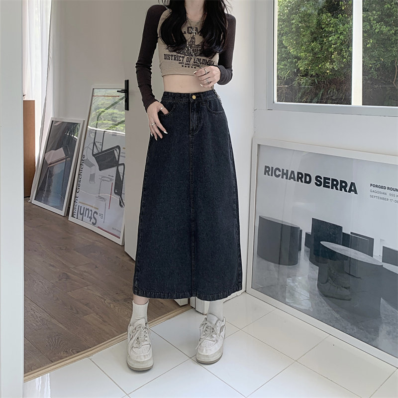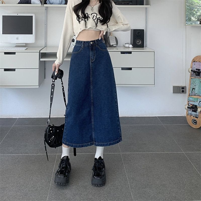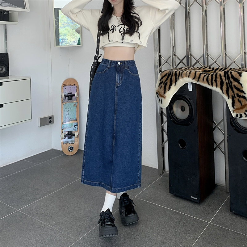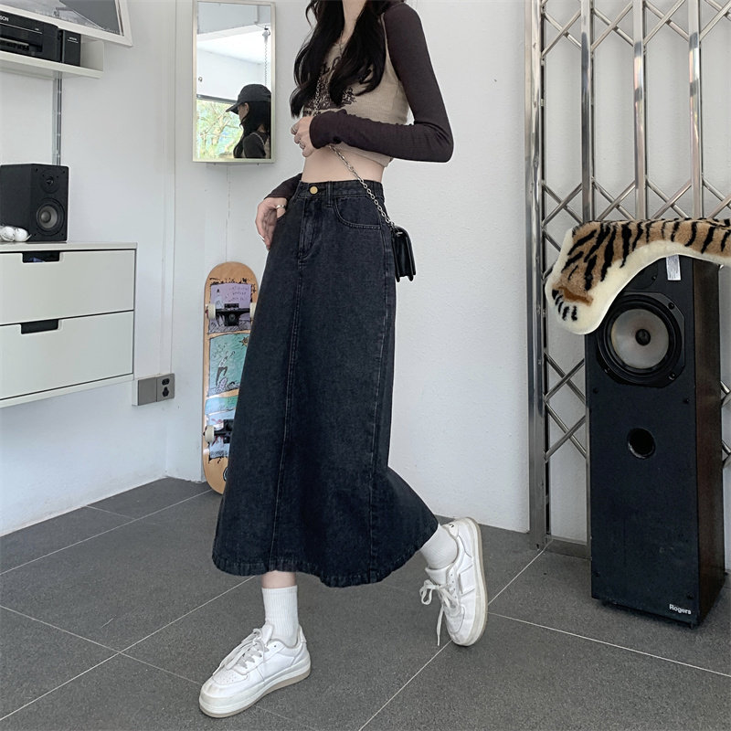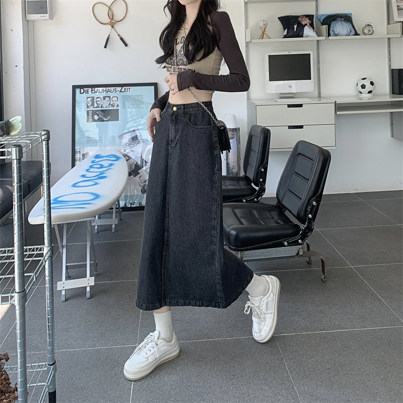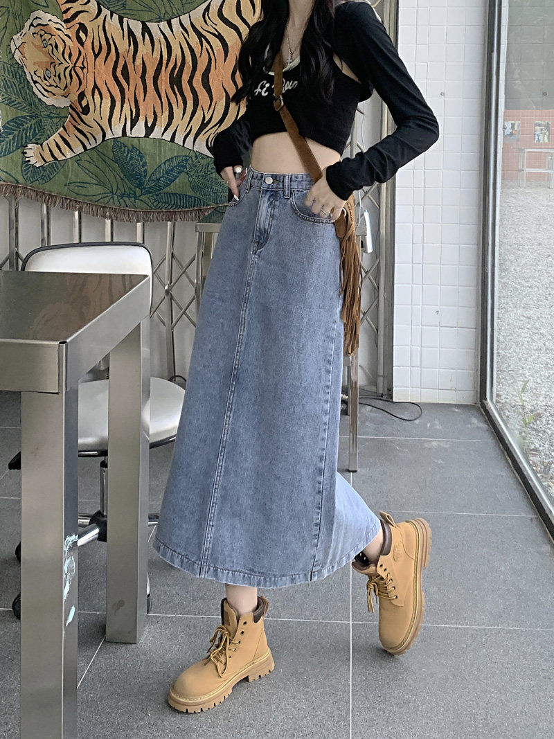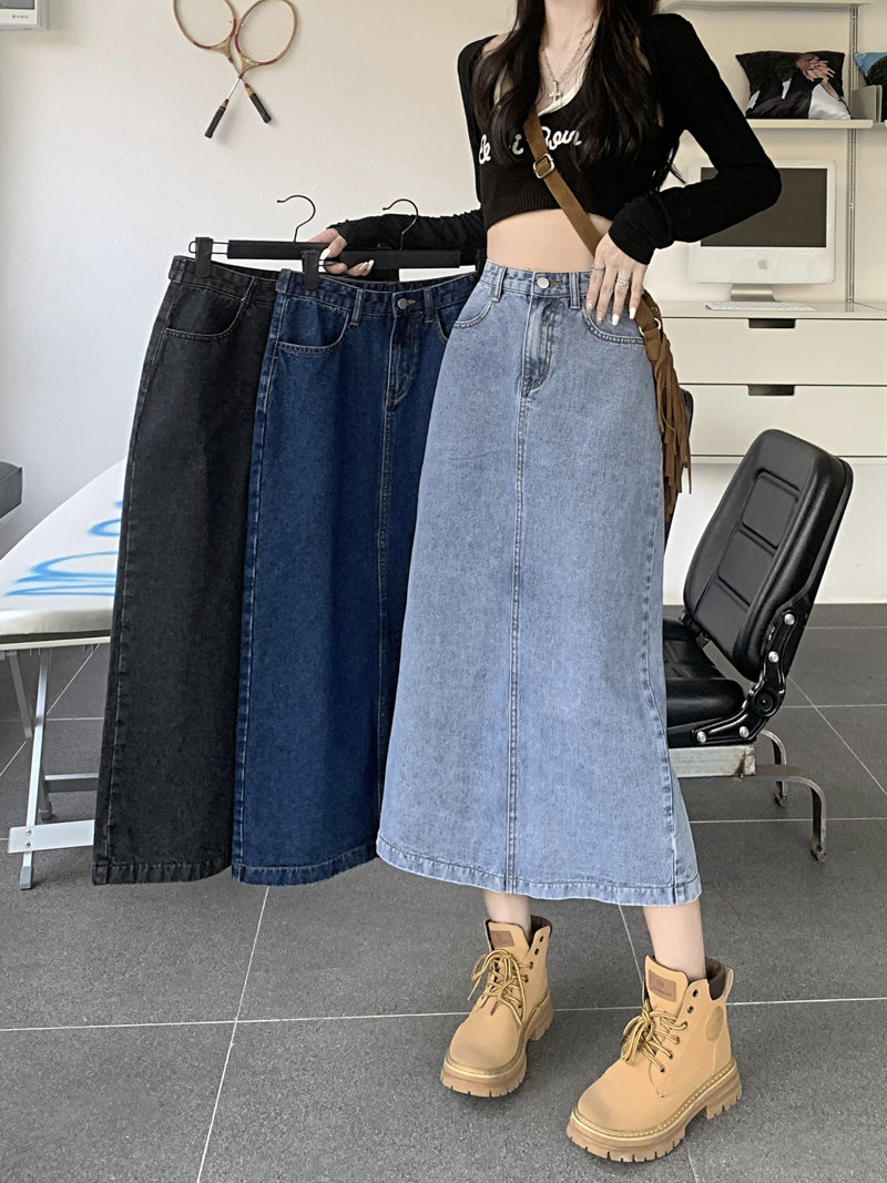 Весенняя длинная джинсовая юбка, высокая талия, 2025 года, средней длины, А-силуэт, с акцентом на бедрах