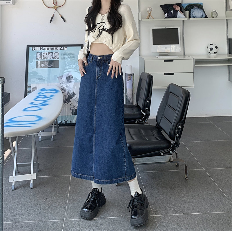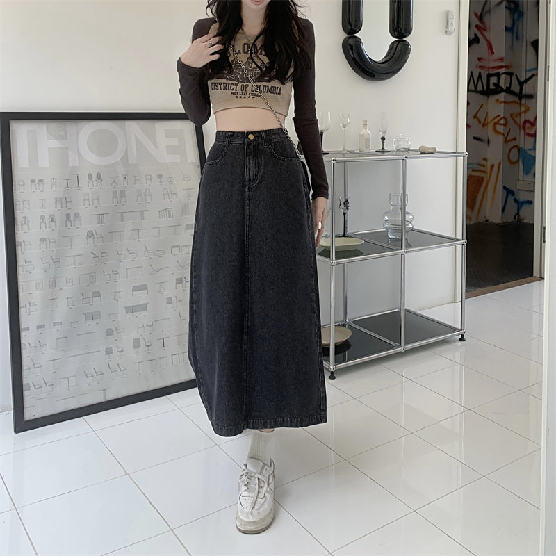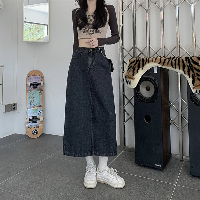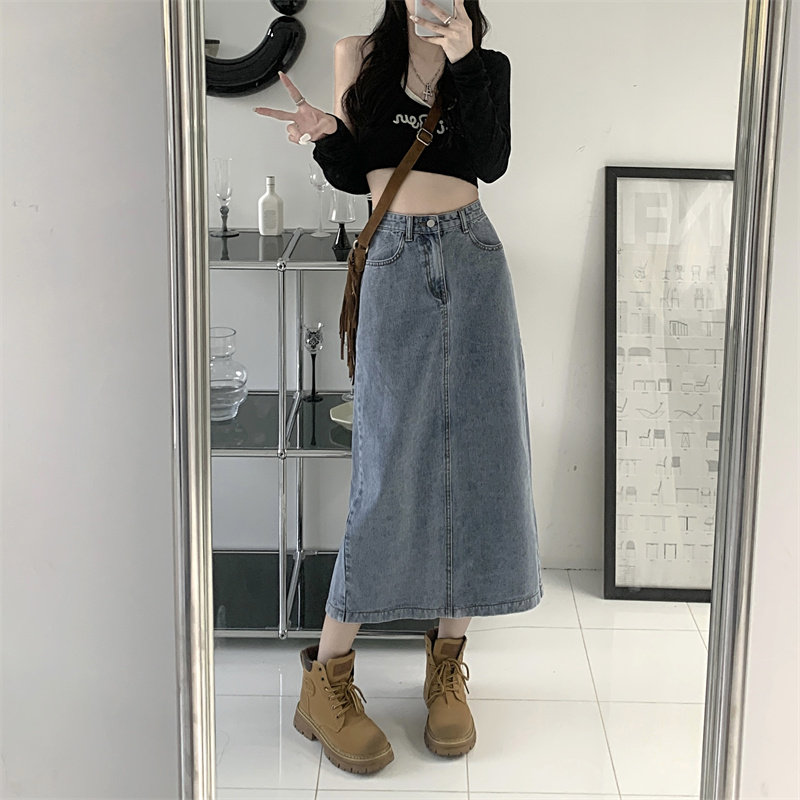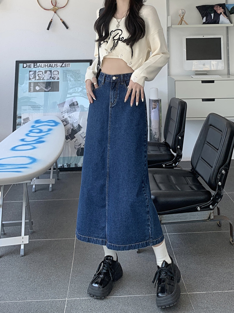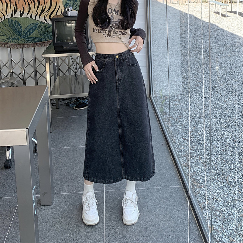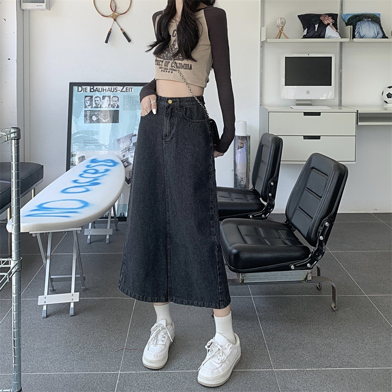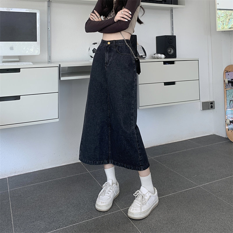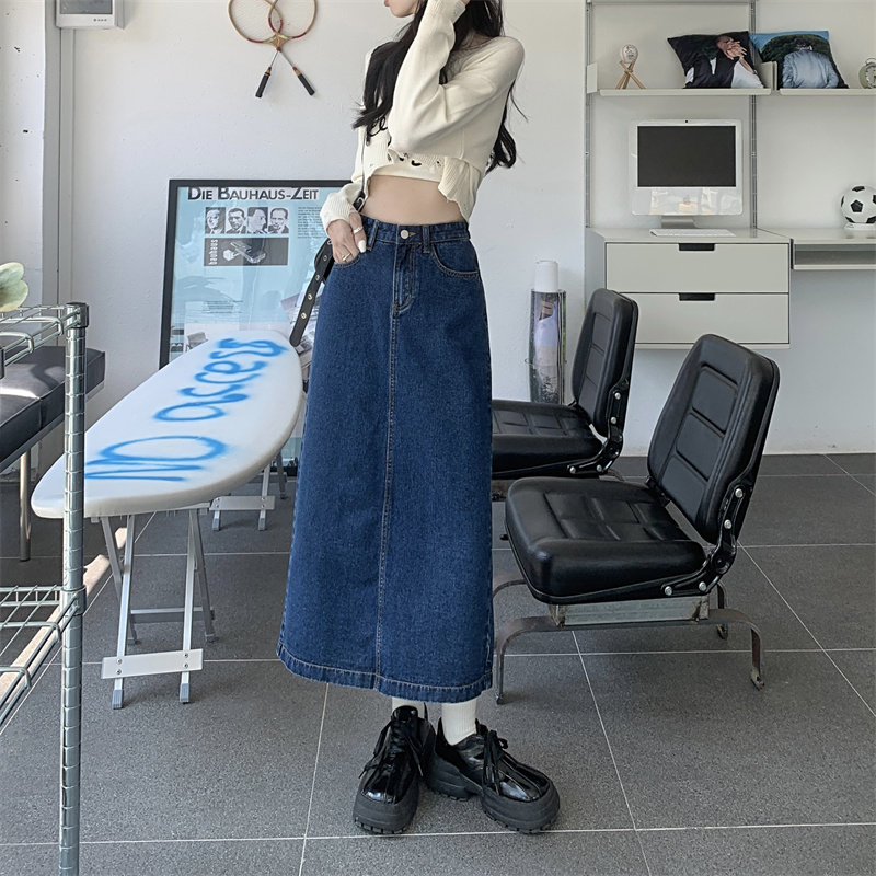 Весенняя длинная джинсовая юбка, высокая талия, 2025 года, средней длины, А-силуэт, с акцентом на бедрах