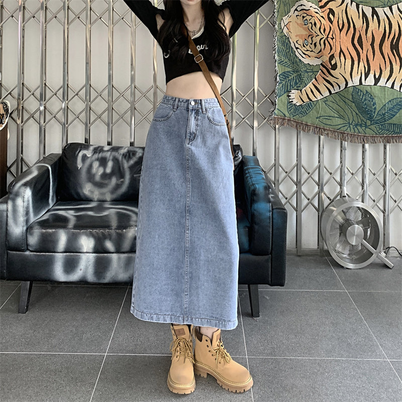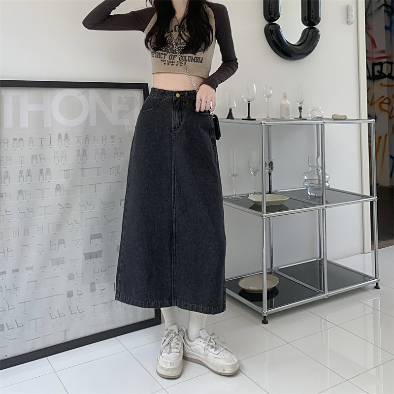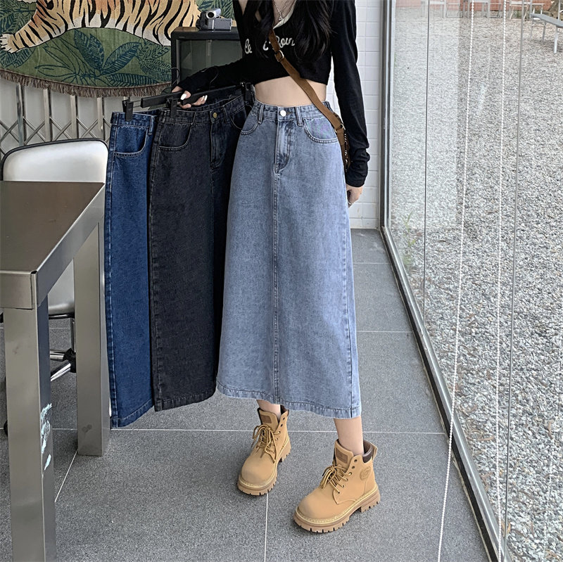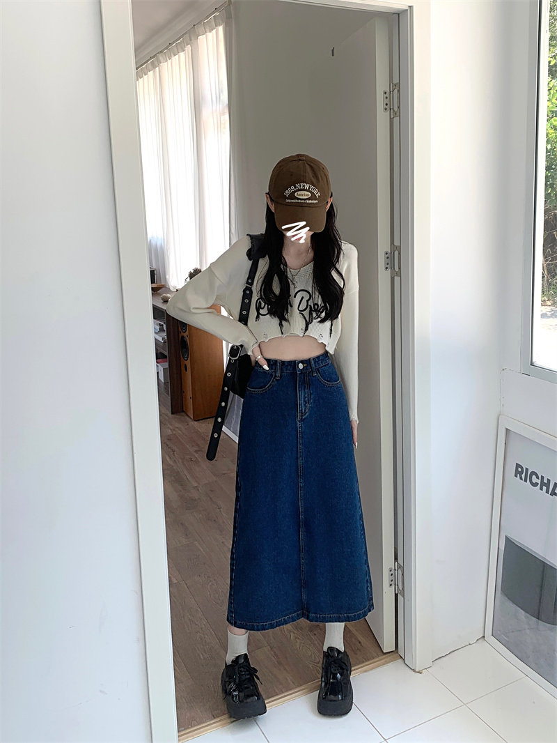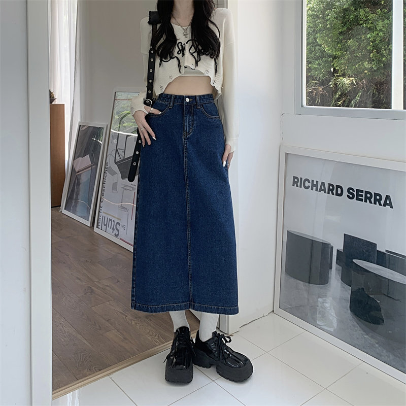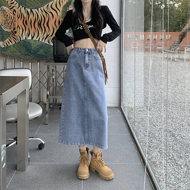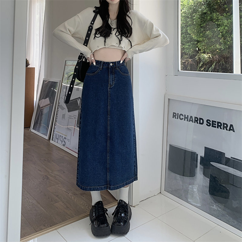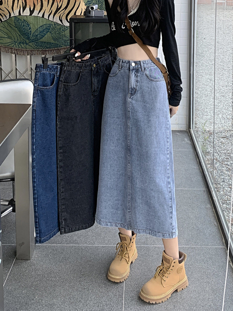 Весенняя длинная джинсовая юбка, высокая талия, 2025 года, средней длины, А-силуэт, с акцентом на бедрах