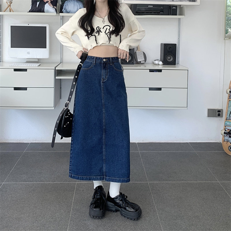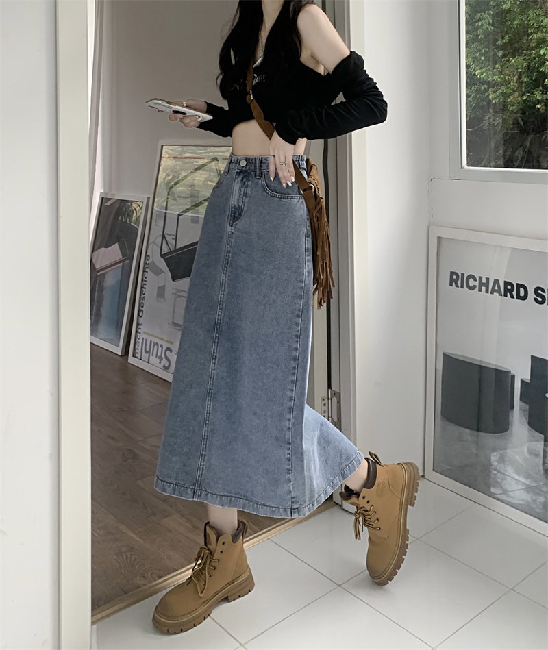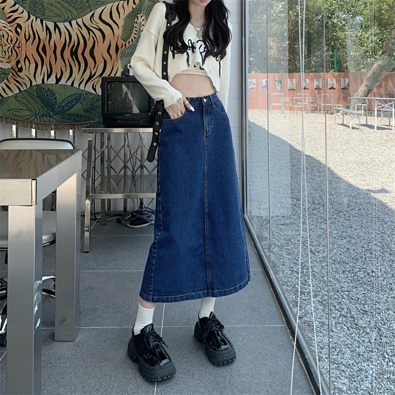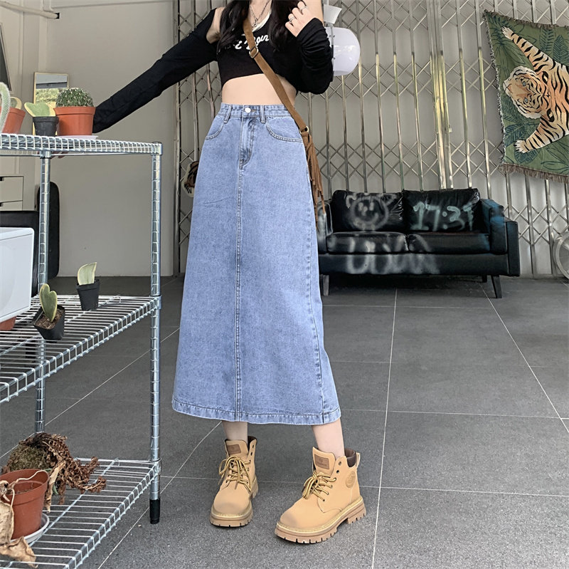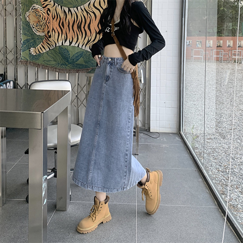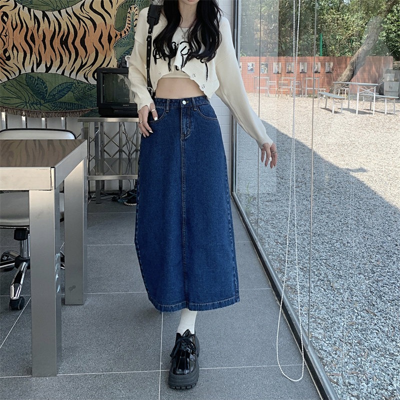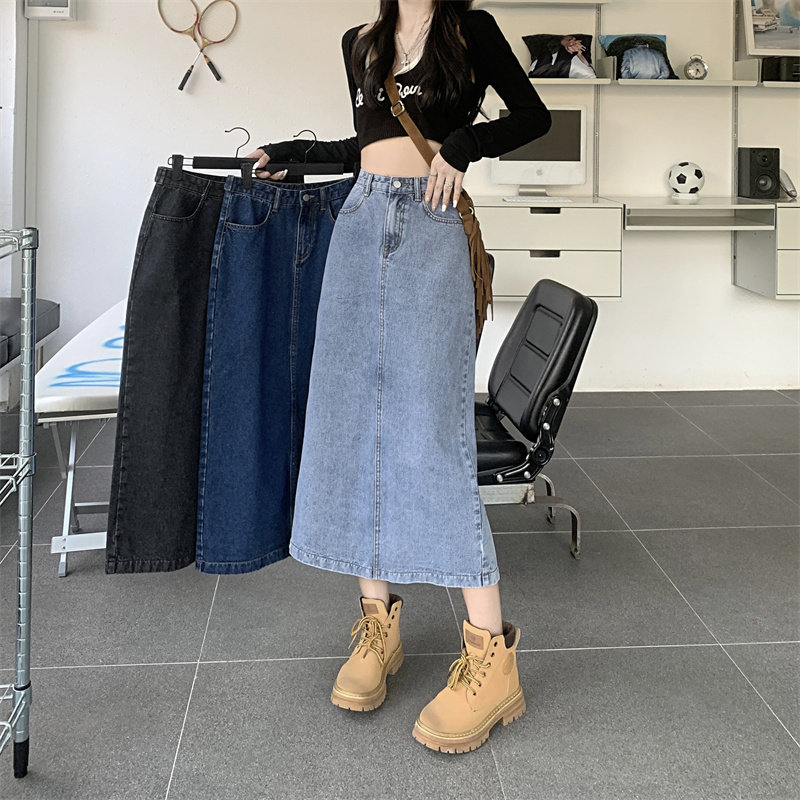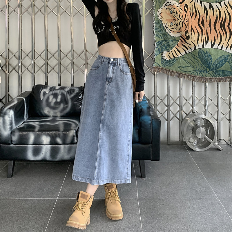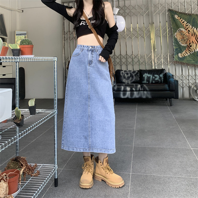 Весенняя длинная джинсовая юбка, высокая талия, 2025 года, средней длины, А-силуэт, с акцентом на бедрах