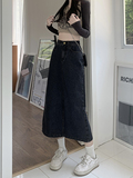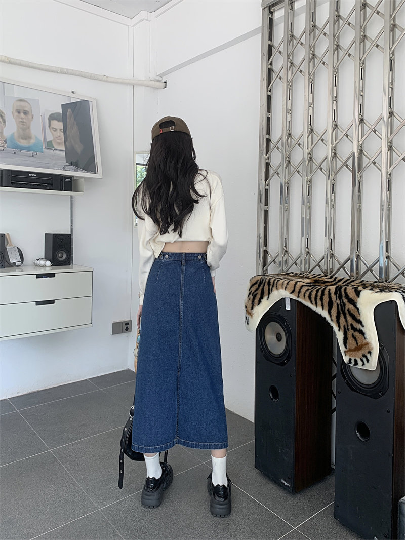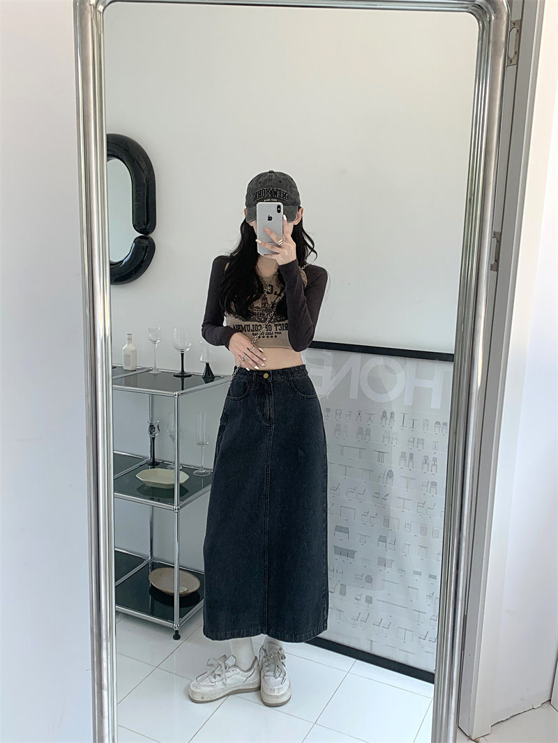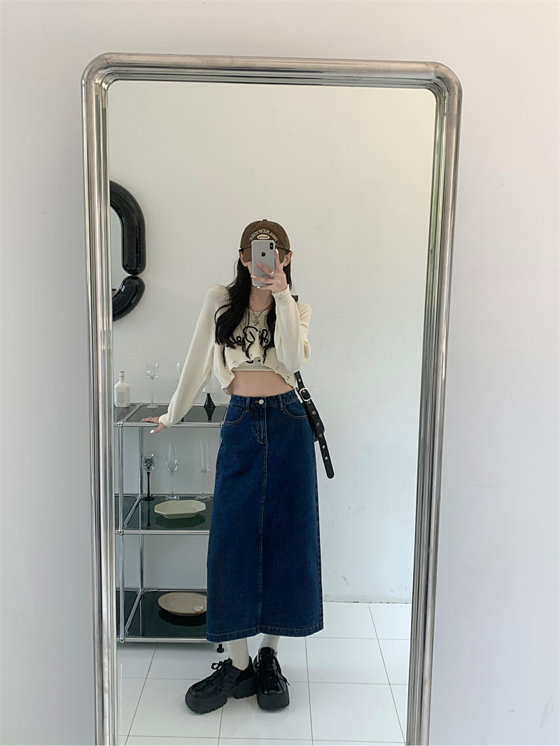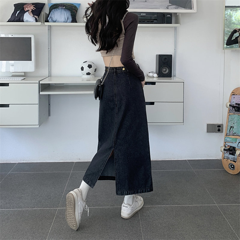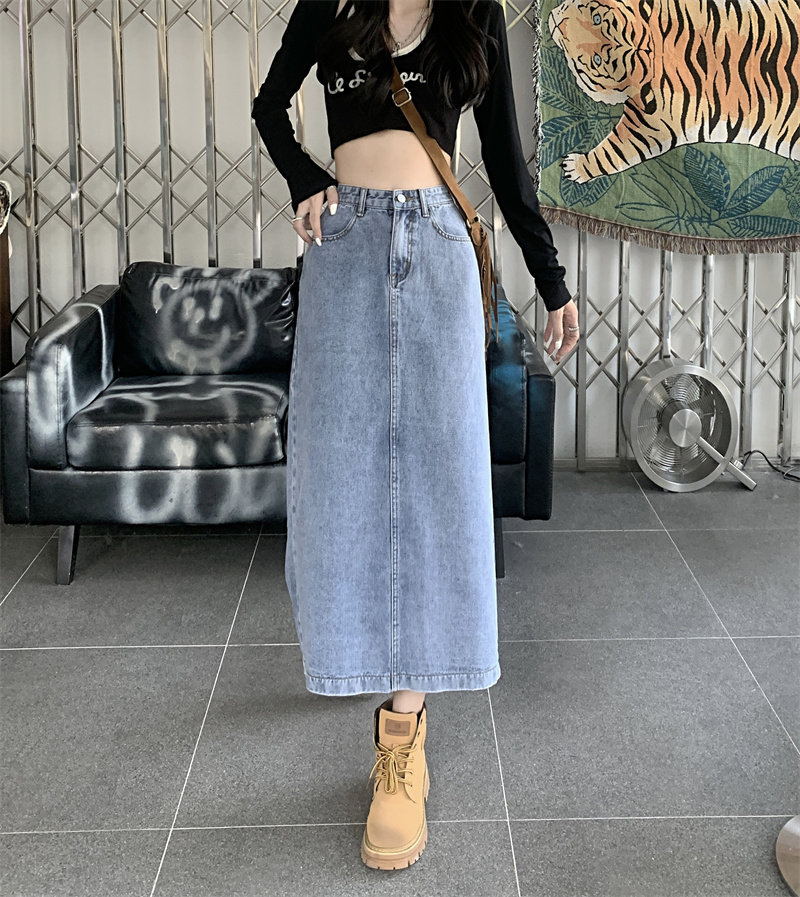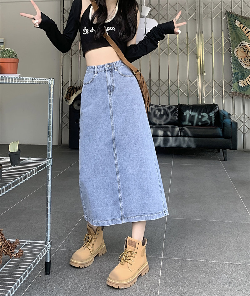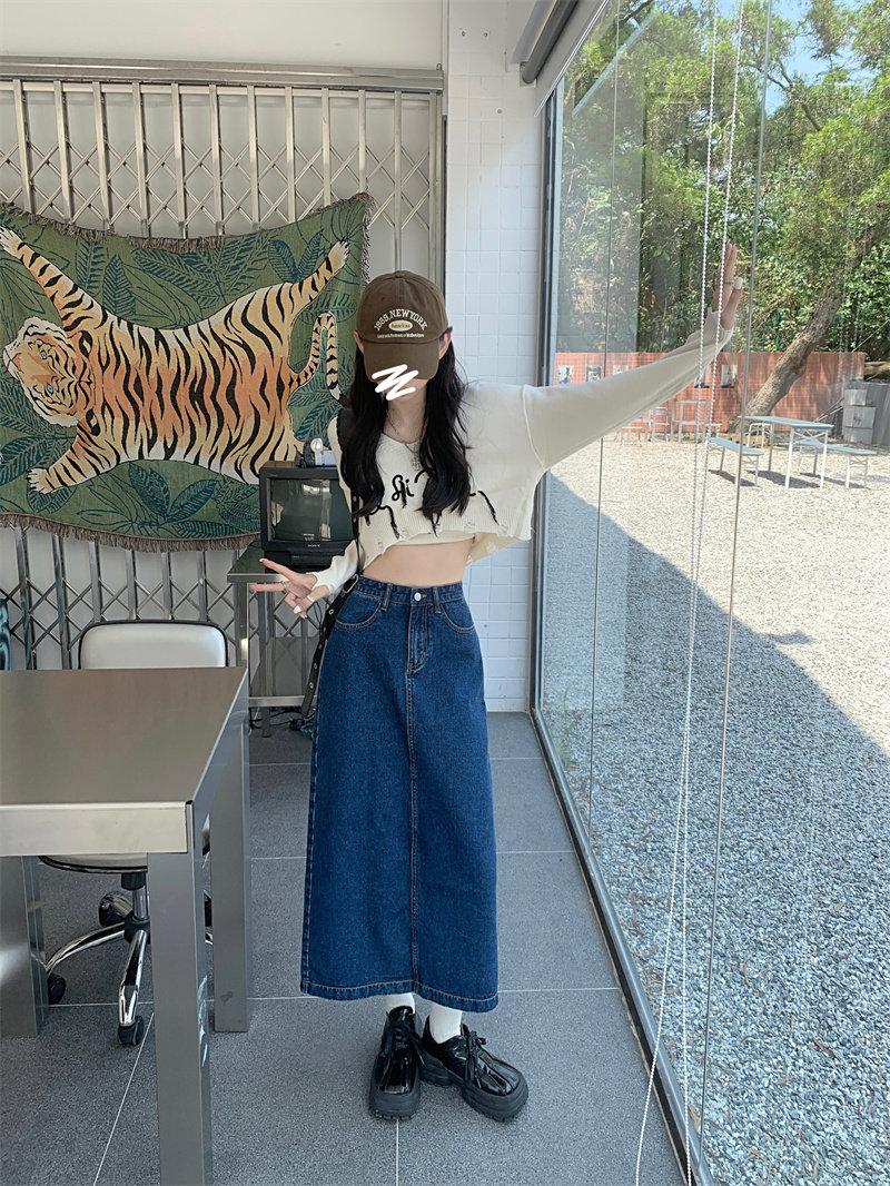 Весенняя длинная джинсовая юбка, высокая талия, 2025 года, средней длины, А-силуэт, с акцентом на бедрах