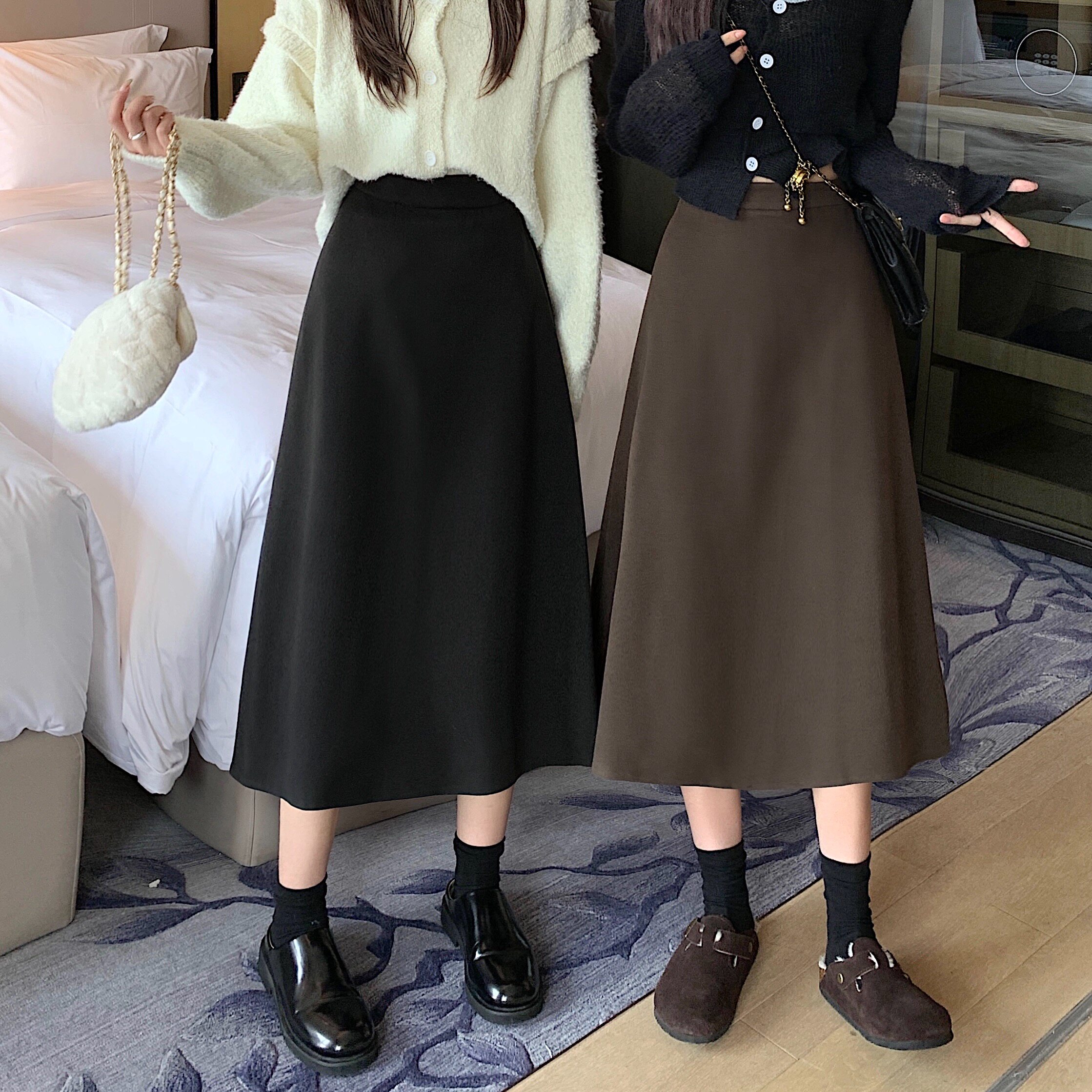 Весенняя длинная шерстяная юбка, большой размер, высокая талия, А-силуэт
