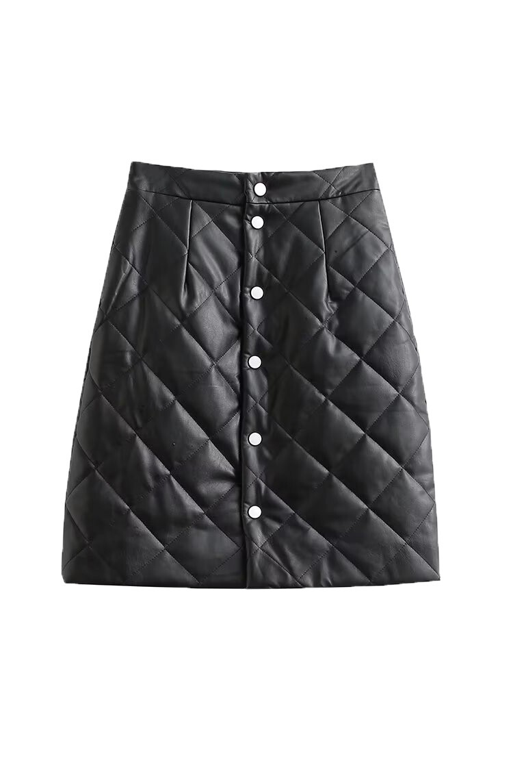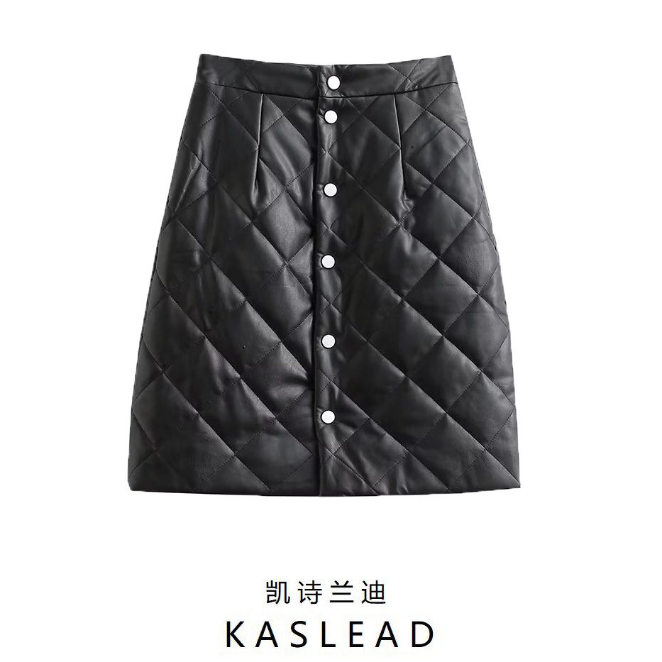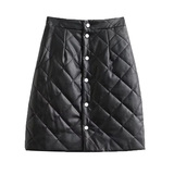 Полиуретановая стеганая модная юбка, цветная мини-юбка, европейский стиль, высокая талия, с акцентом на бедрах