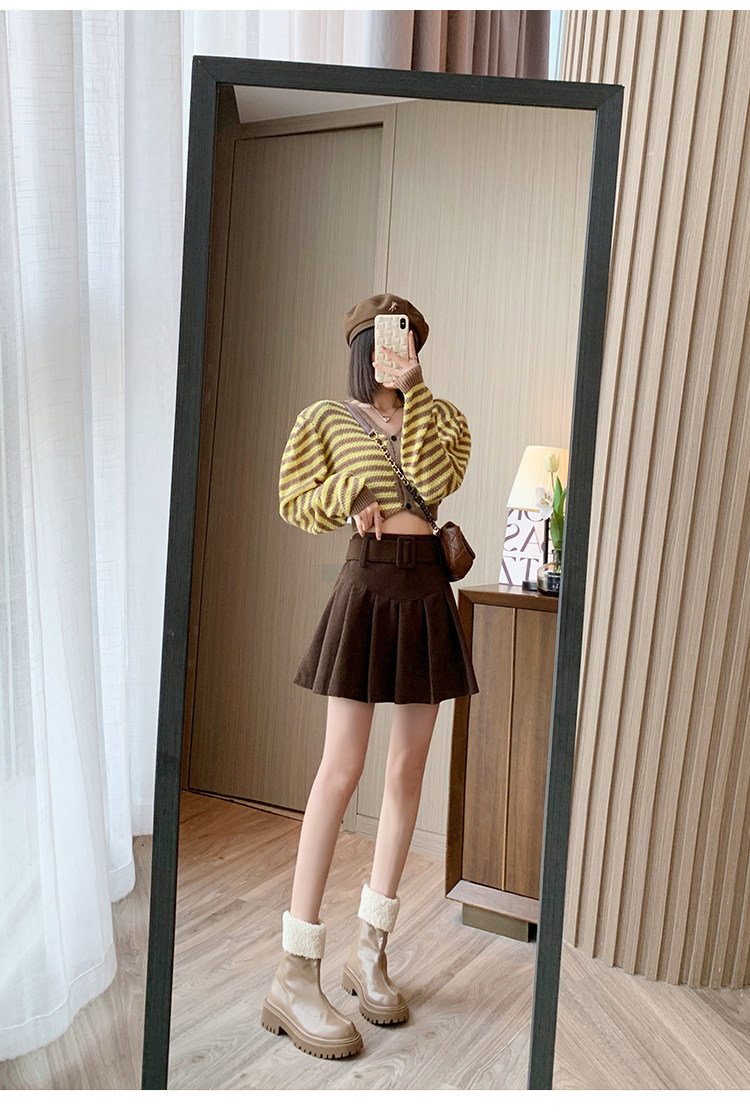 Вельветовая демисезонная приталенная юбка в складку, бархатная ретро мини-юбка, А-силуэт, с акцентом на бедрах
