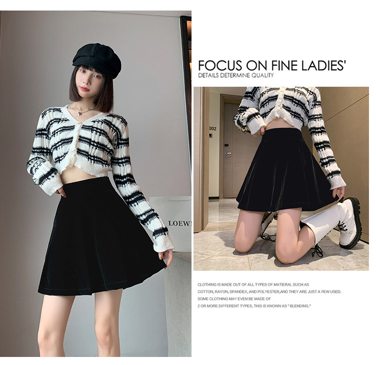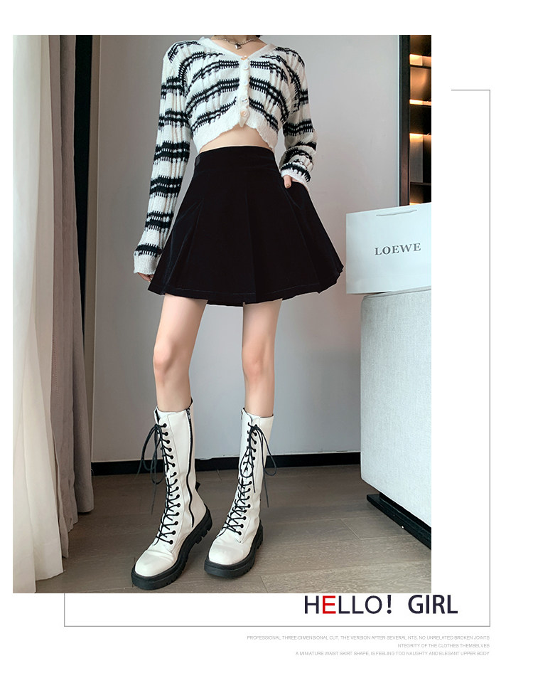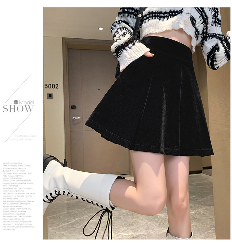 Бархатная черная демисезонная мини-юбка, приталенная юбка в складку