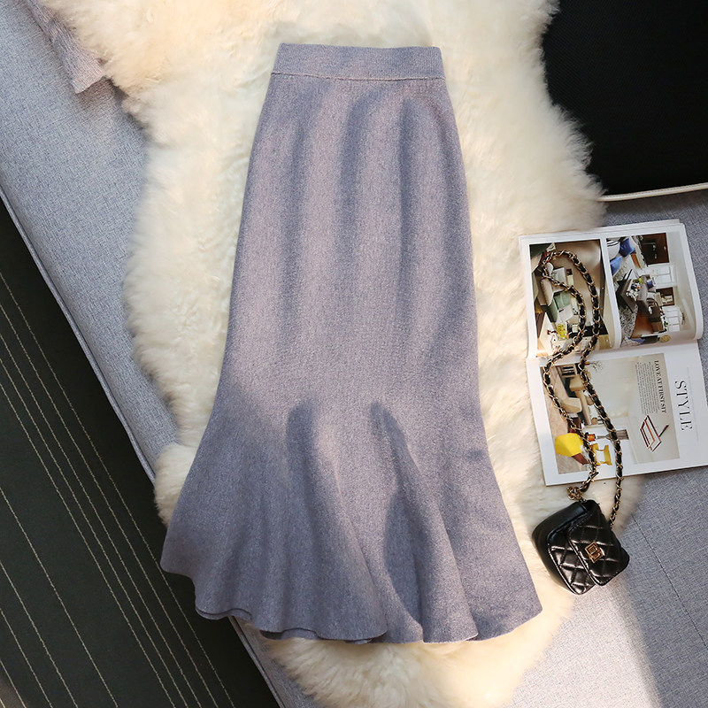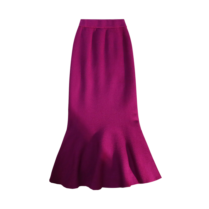Длинная трикотажная демисезонная ретро сексуальная юбка, средней длины, рыбий хвост, французский стиль, высокая талия, с акцентом на бедрах, яркий броский стиль