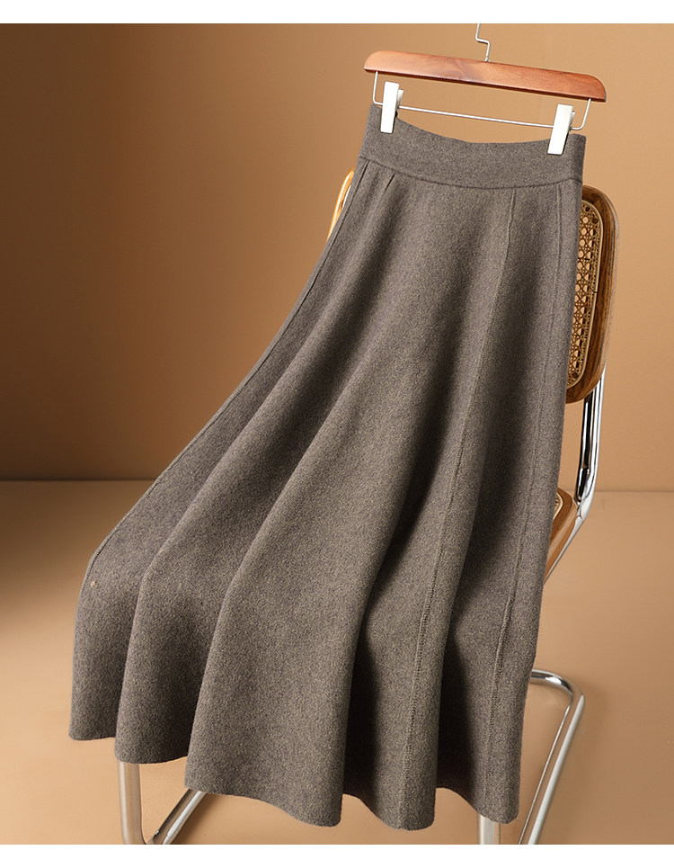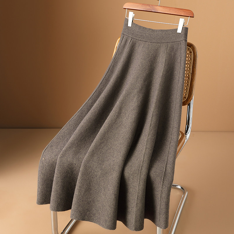 Кашемировая шерстяная весенняя длинная юбка, А-силуэт, увеличенная толщина, средней длины