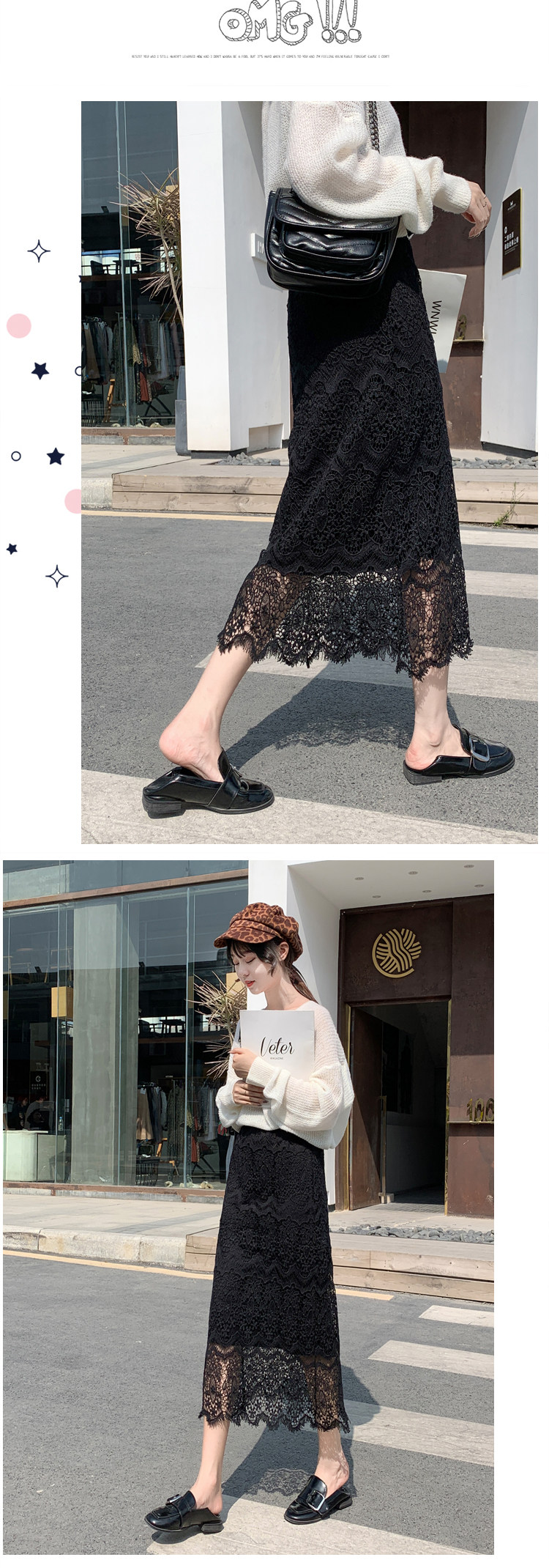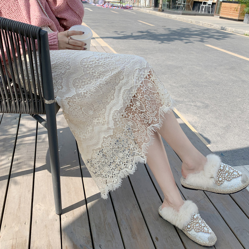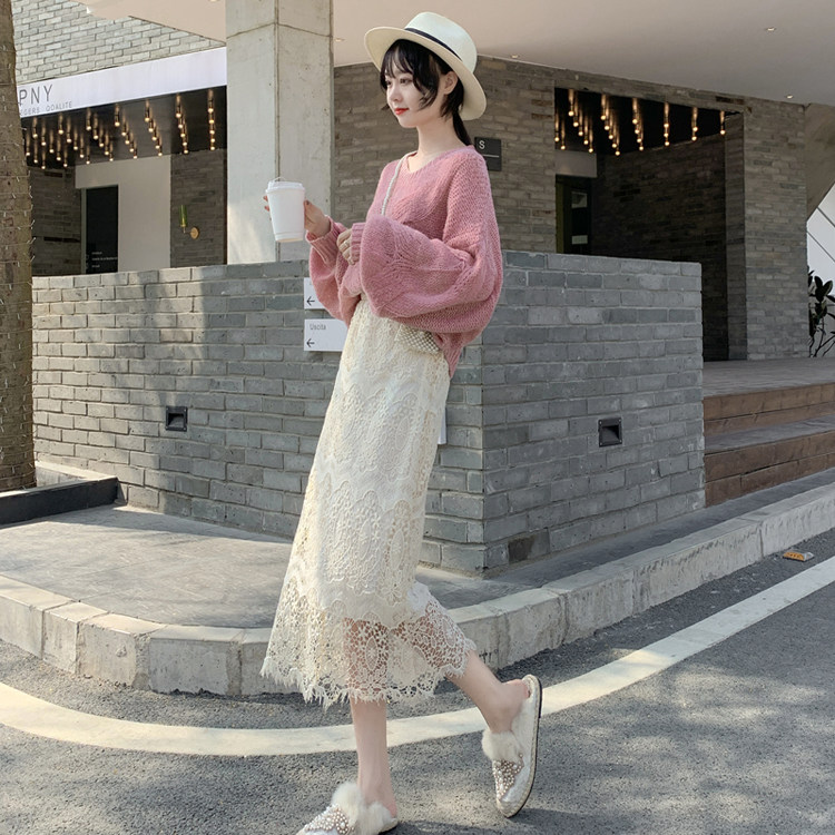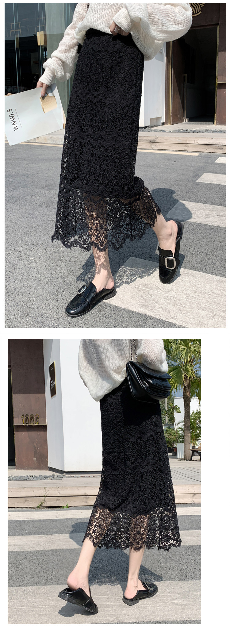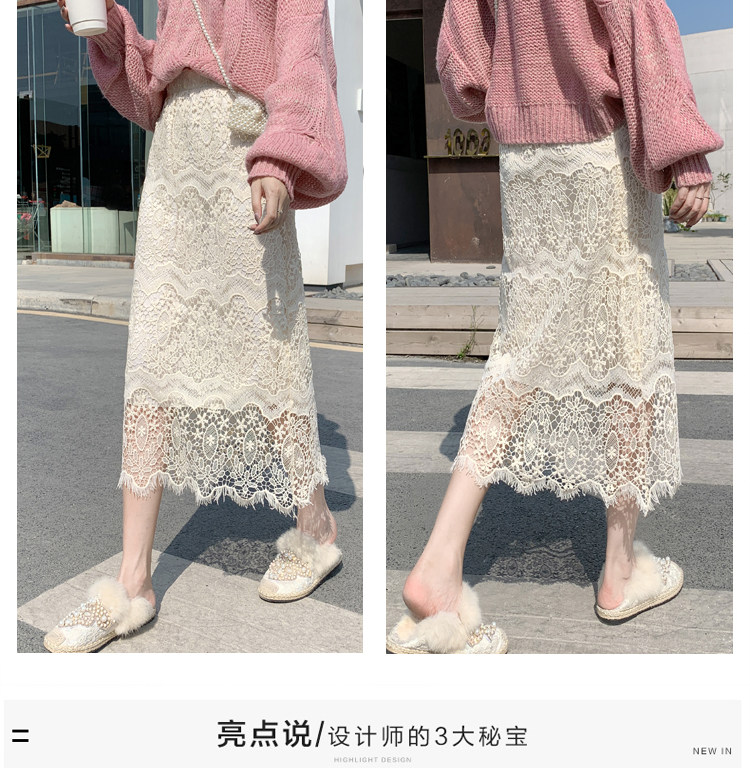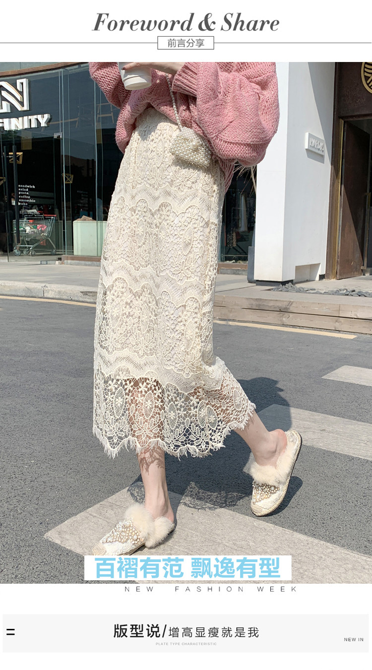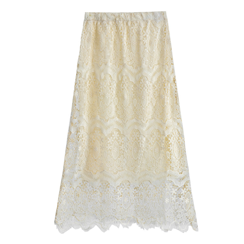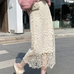 Приталенная кружевная демисезонная модная длинная юбка, городской стиль, высокая талия, А-силуэт, средней длины