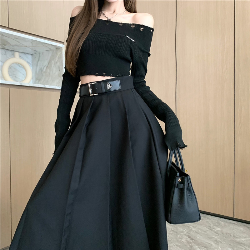 Демисезонный дизайнерский костюм, юбка в складку, длинная юбка, тренд сезона, высокая талия, плиссированная юбка, длина миди