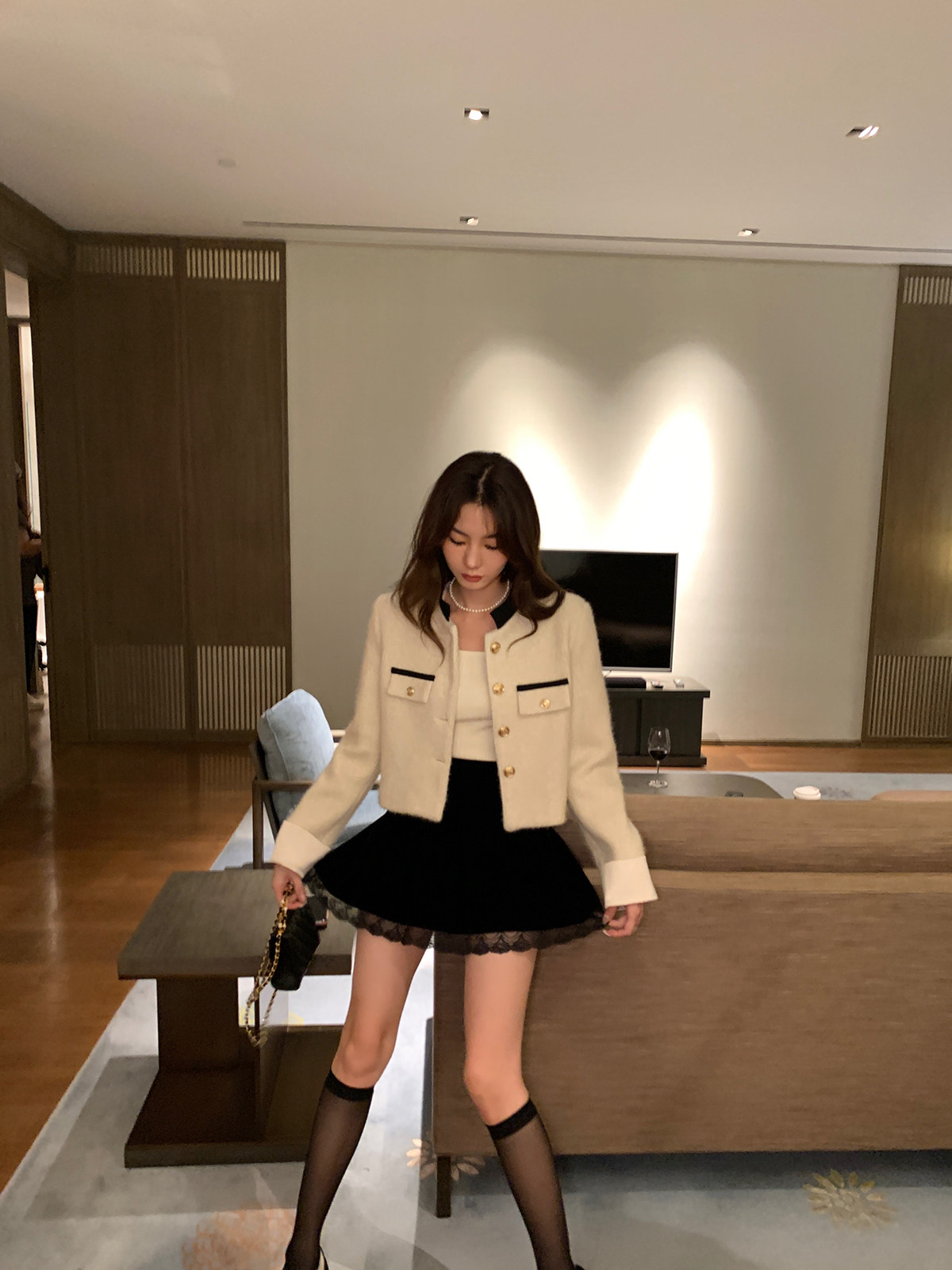 Черная кружевная мини-юбка, юбка в складку, коллекция 2023, высокая талия, А-силуэт