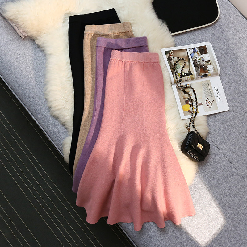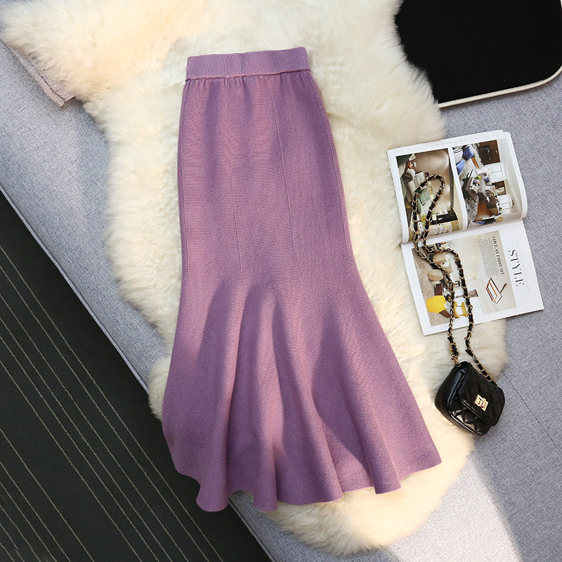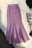 Сиреневая трикотажная демисезонная юбка, рыбий хвост