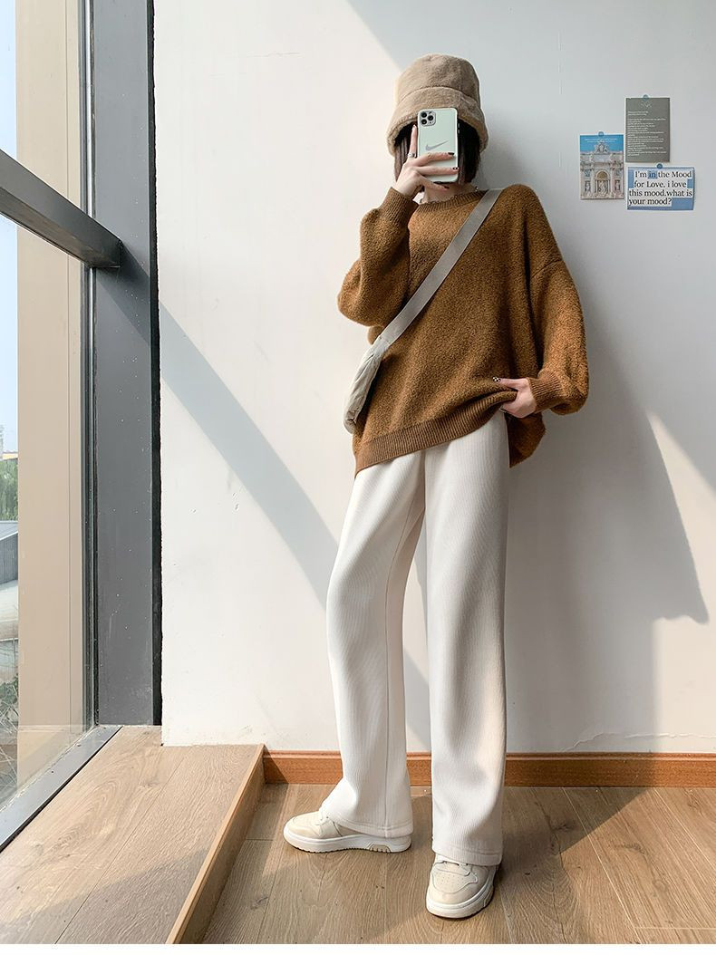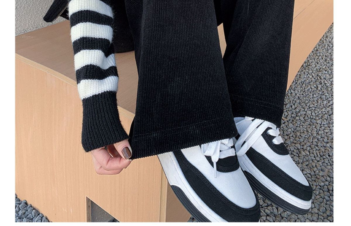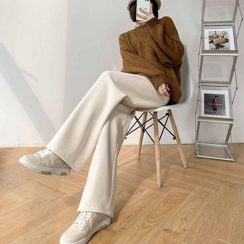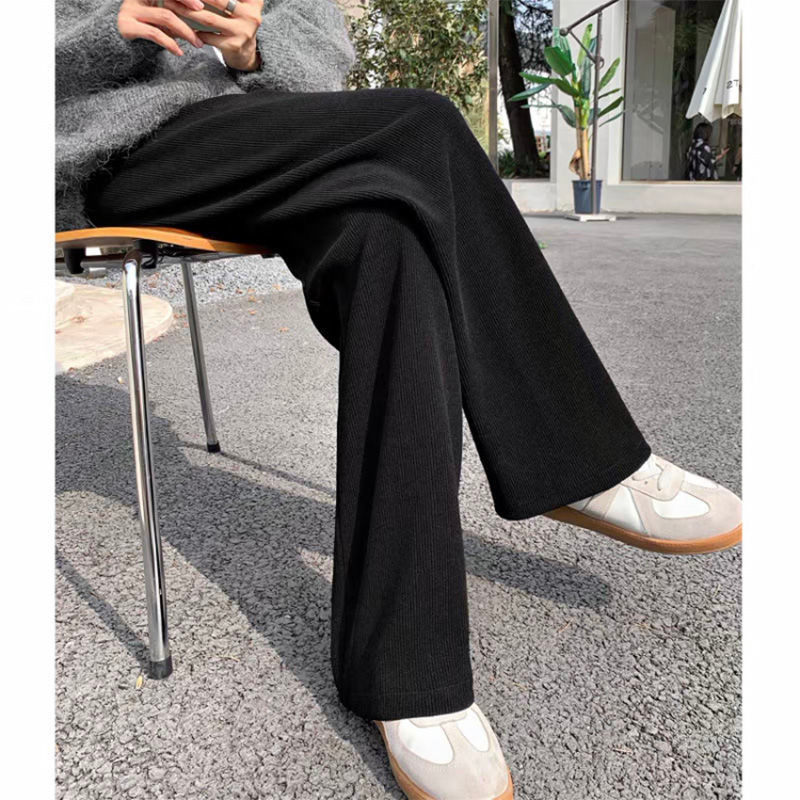 Черные осенние демисезонные вельветовые штаны, высокая талия, свободный прямой крой