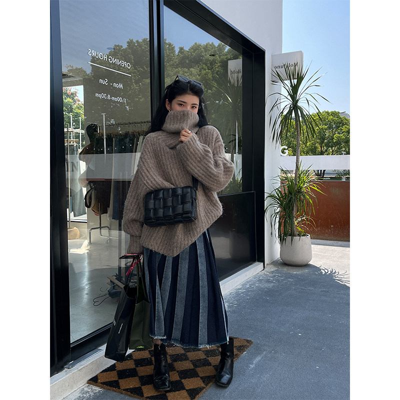 Джинсовая юбка, демисезонная длинная юбка в складку, средней длины, А-силуэт