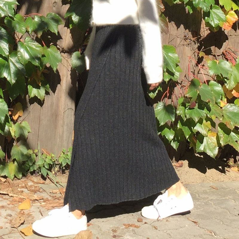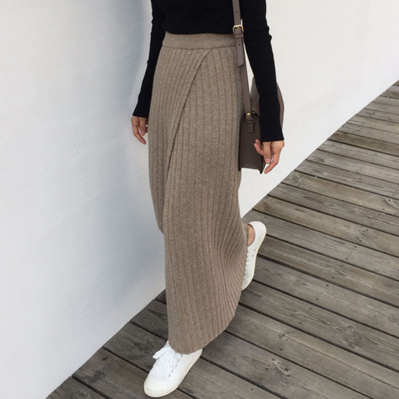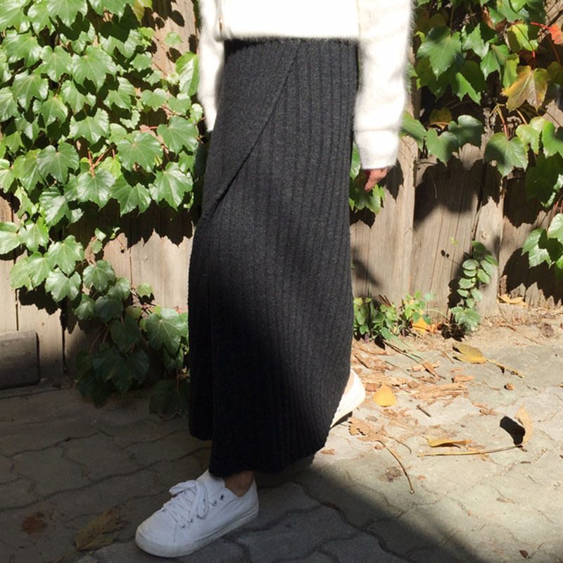 Демисезонная ретро приталенная дизайнерская трикотажная юбка, в корейском стиле, высокая талия, А-силуэт