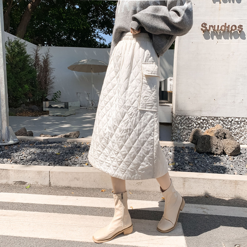 Стеганая зимняя удерживающая тепло юбка с ромбовидным узором, увеличенная толщина, в корейском стиле, высокая талия, свободный прямой крой