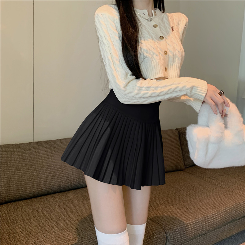 Шерстяная белая осенняя юбка в складку, 2024 года, подходит для подростков, высокая талия, А-силуэт