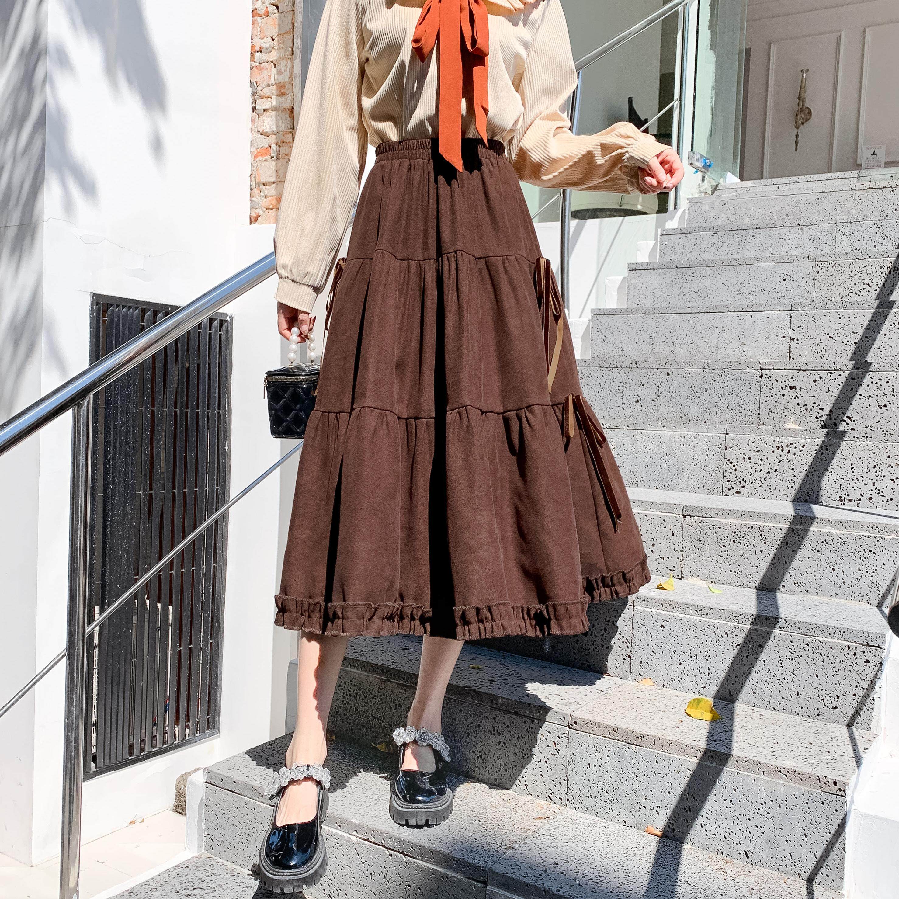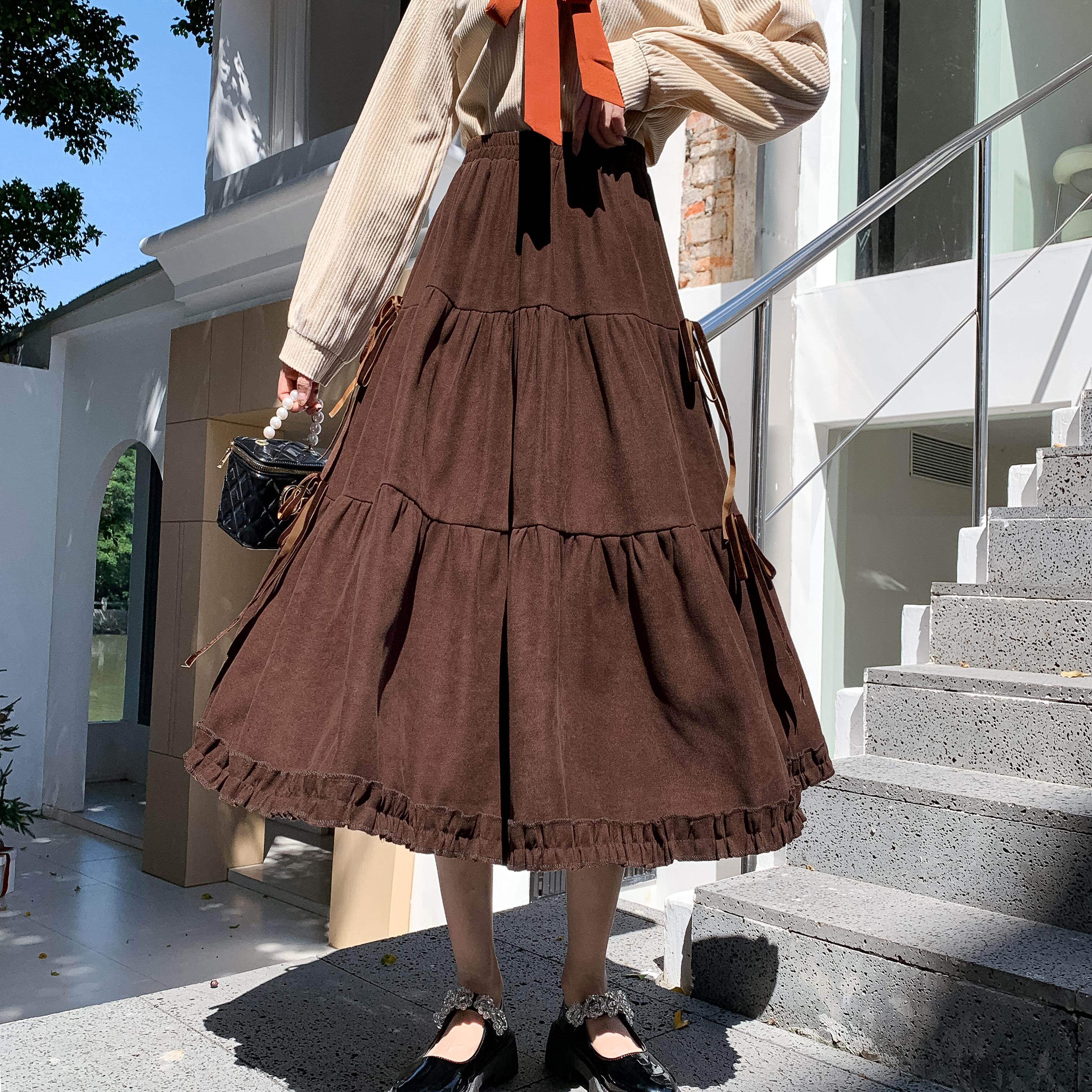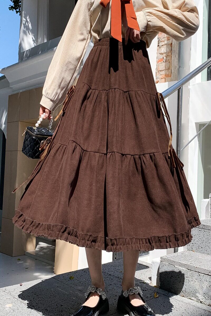 Вельветовая демисезонная юбка, дизайнерский длинный ремень, тренд сезона, А-силуэт, длина миди