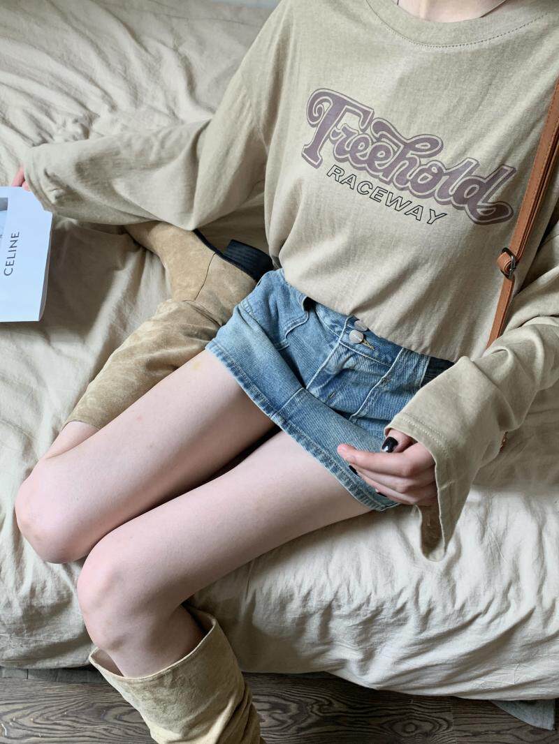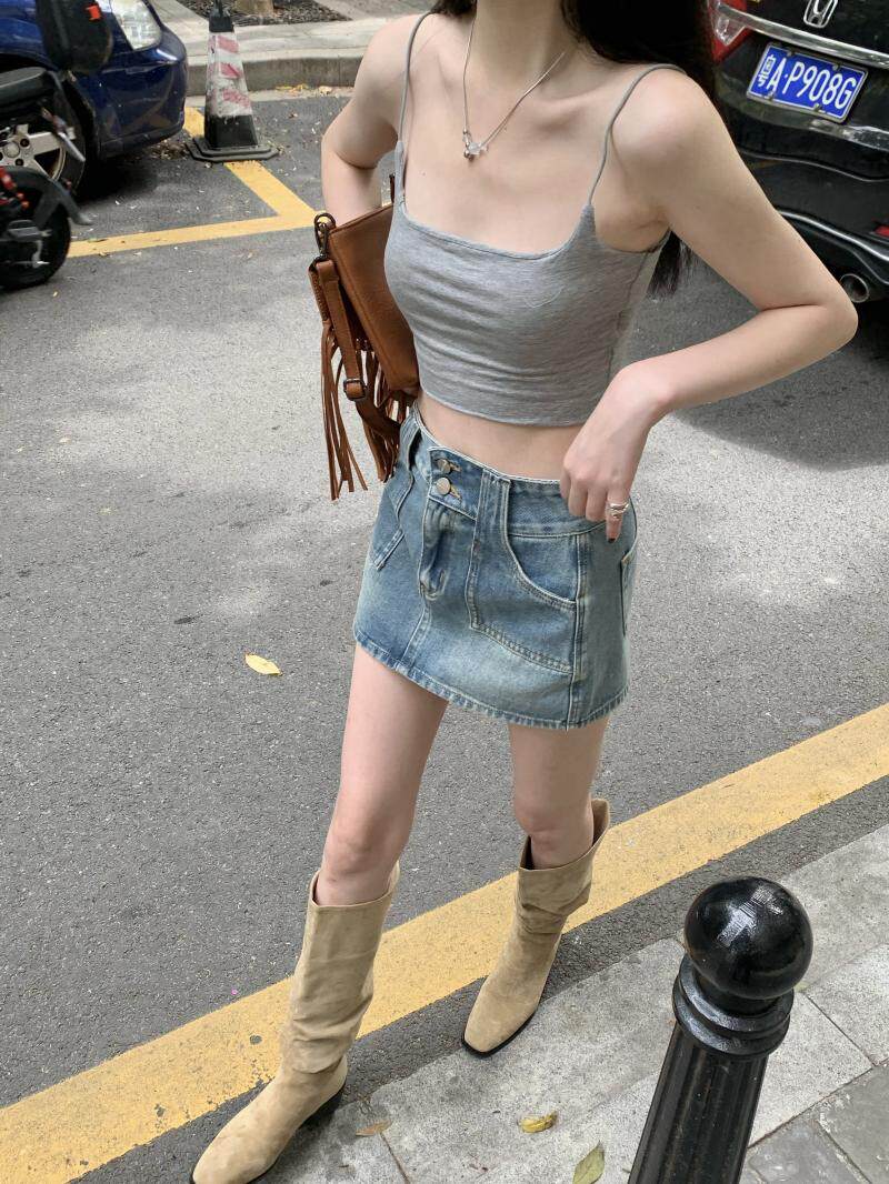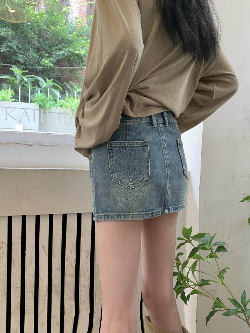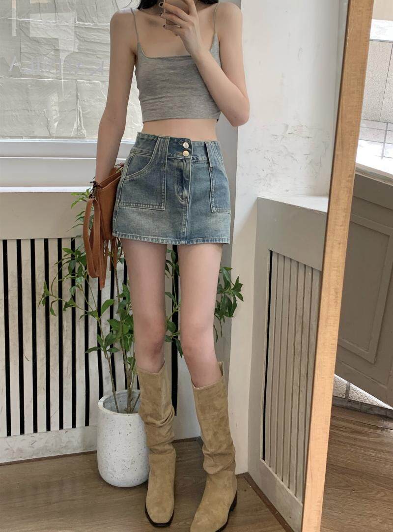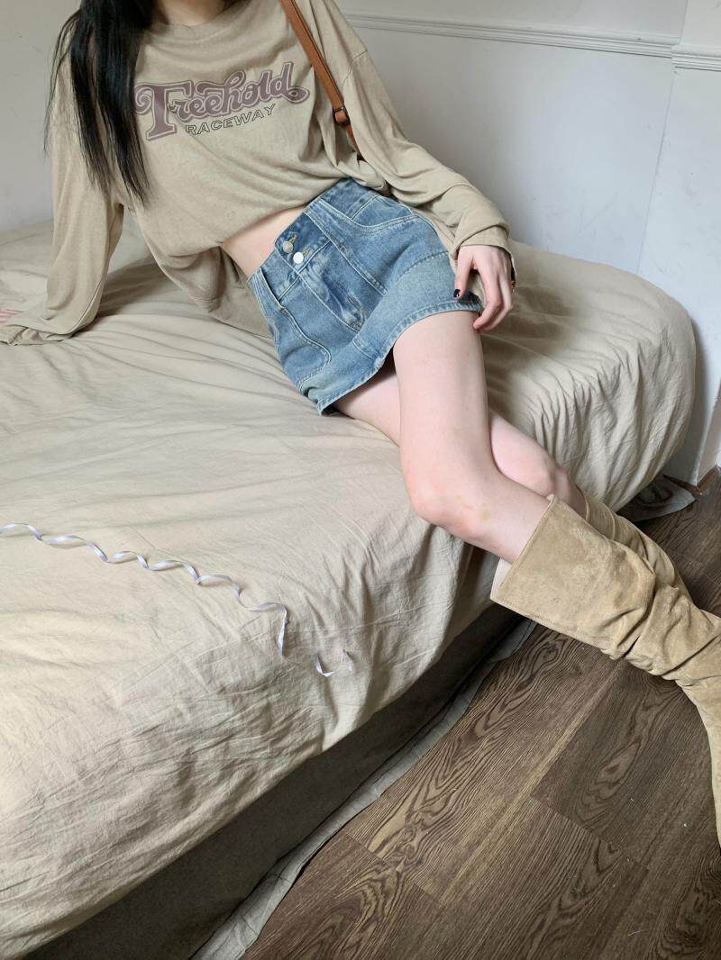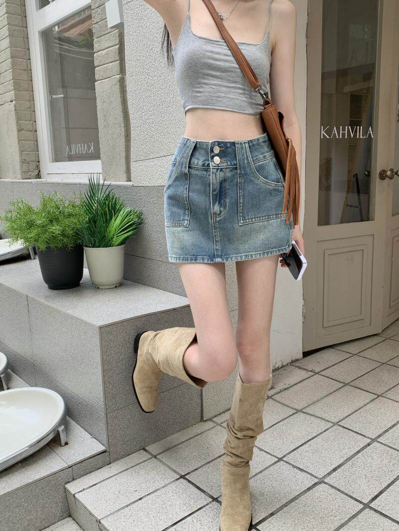 Ретро джинсовая юбка, осенние леггинсы, мини-юбка, А-силуэт, высокая талия, с акцентом на бедрах