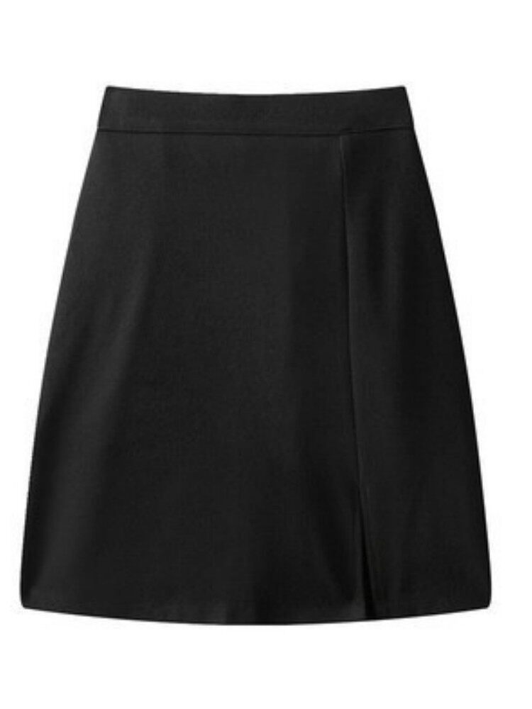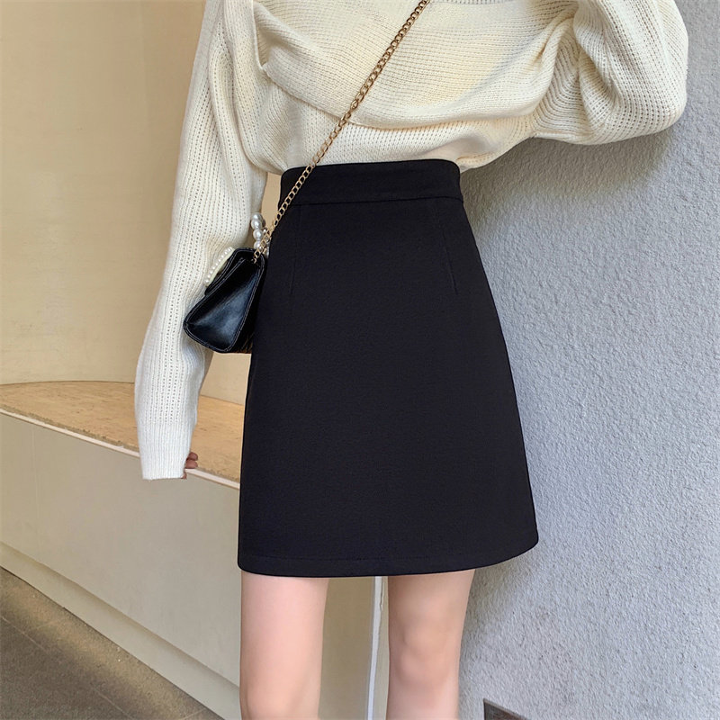 Черная шерстяная юбка, цветной костюм, с акцентом на бедрах, А-силуэт