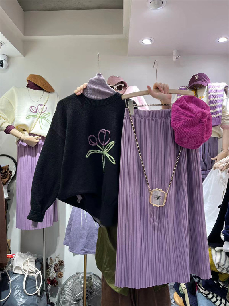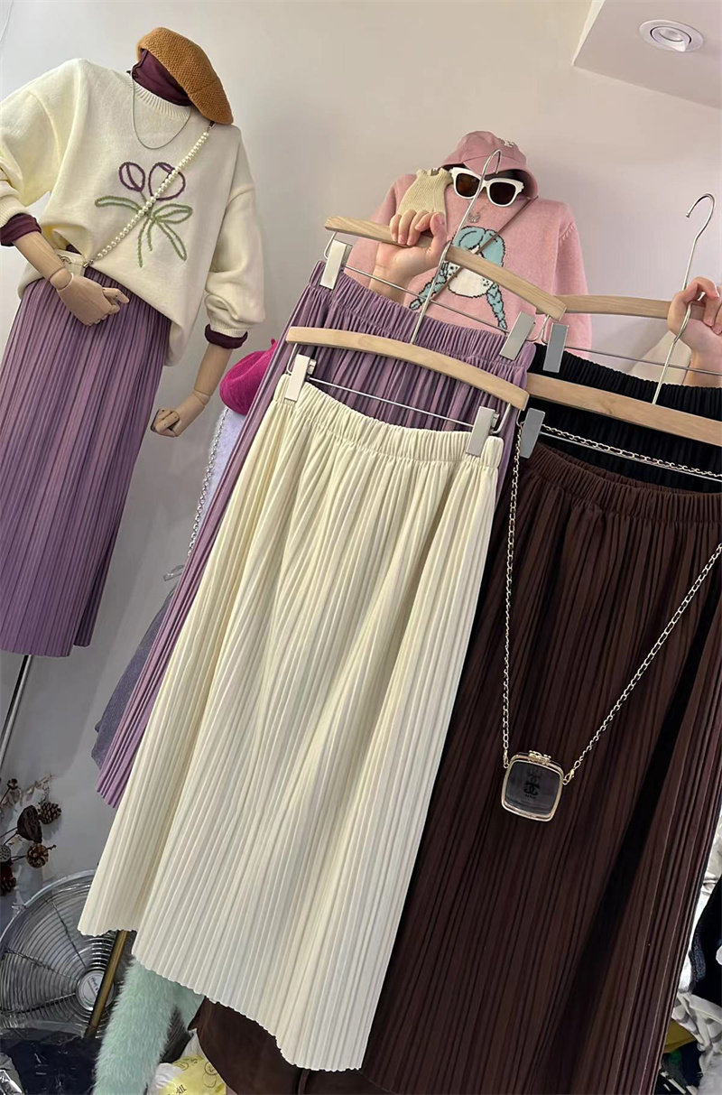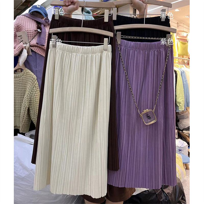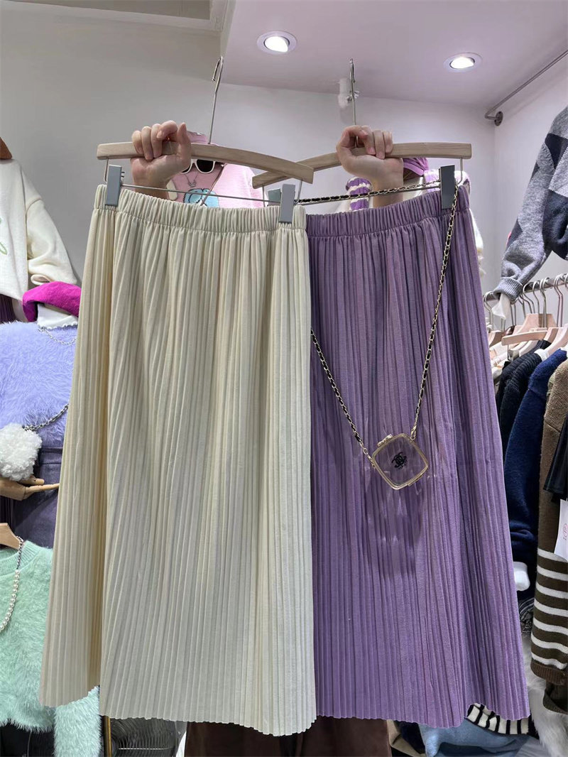 Осенняя сиреневая цветная модная длинная юбка, в корейском стиле