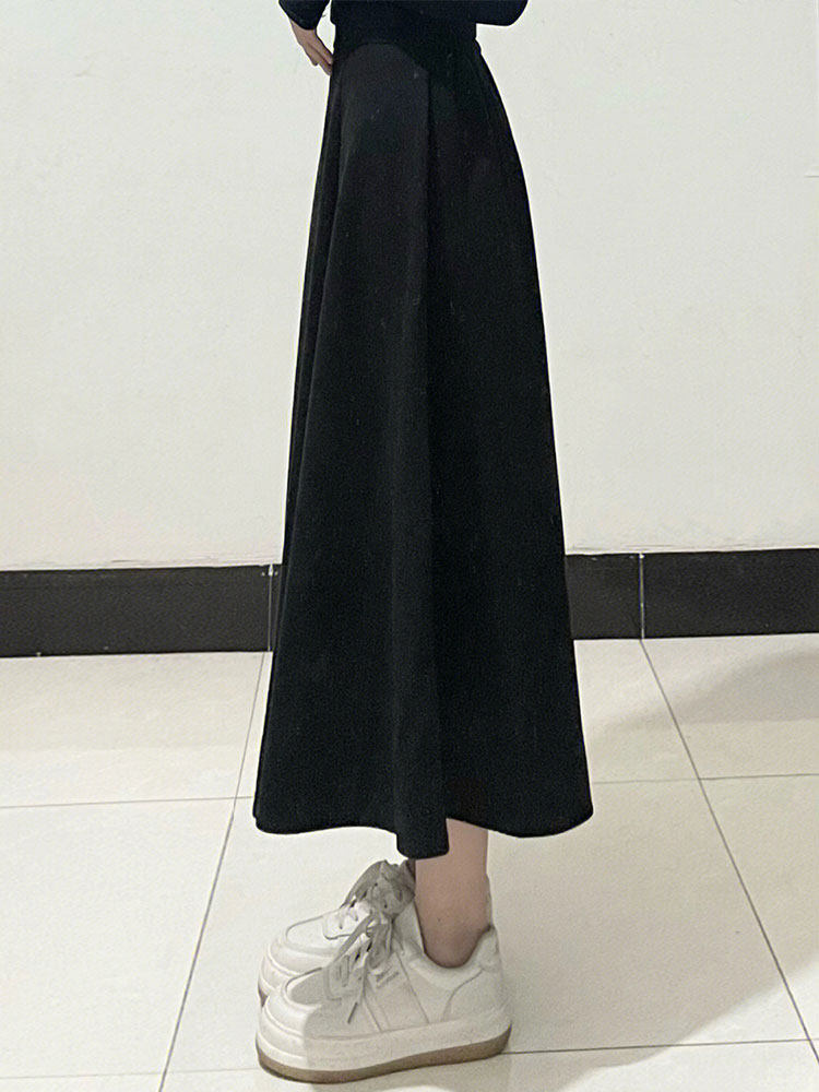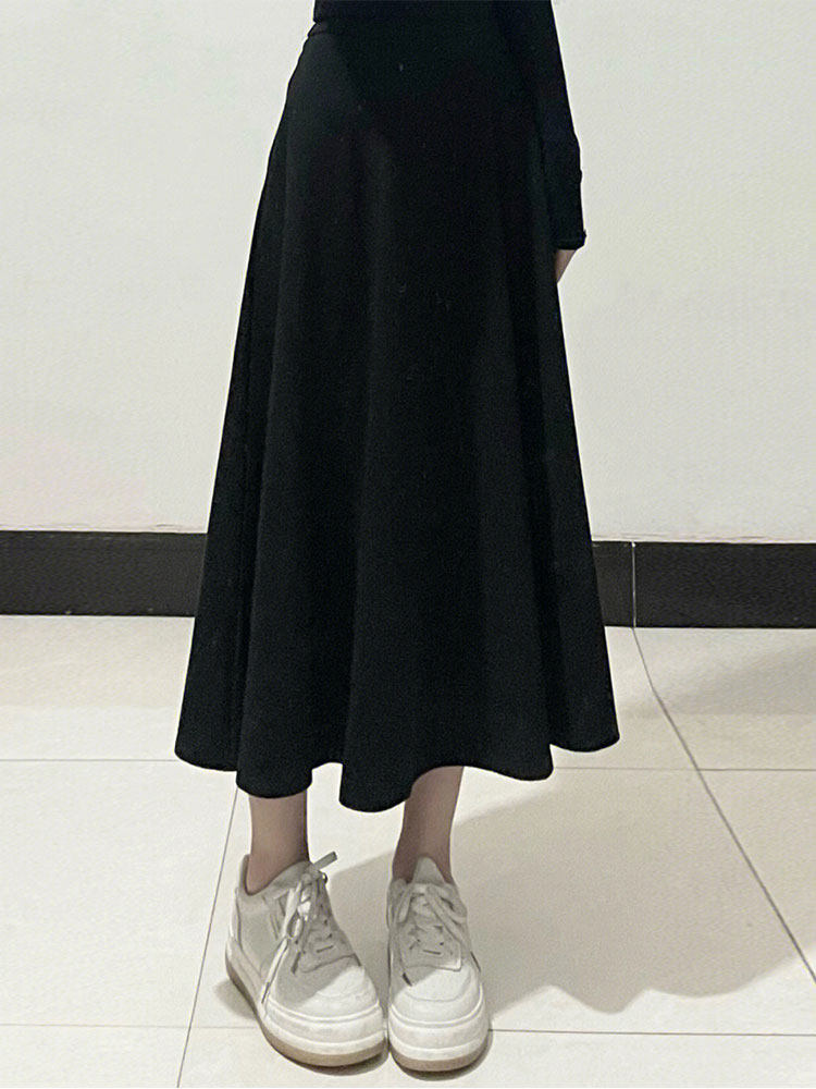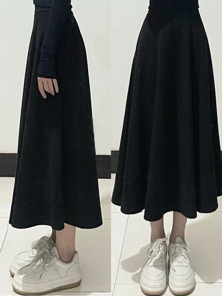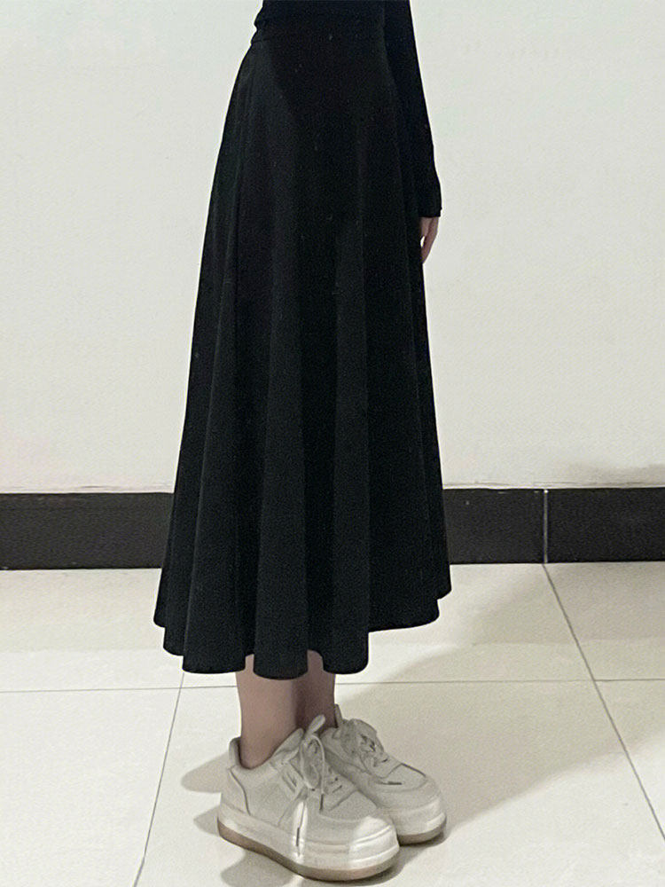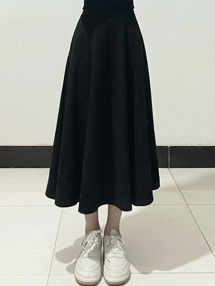 Черная шерстяная юбка, длинный свитер, для формы тела «груша», большой размер, средней длины, А-силуэт