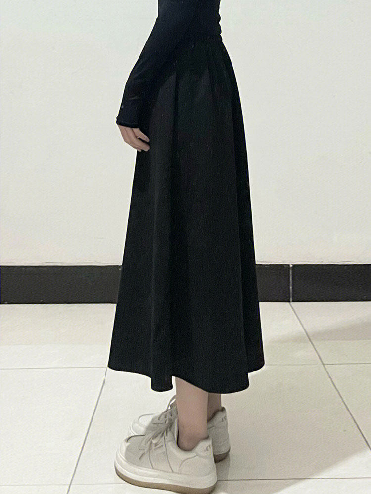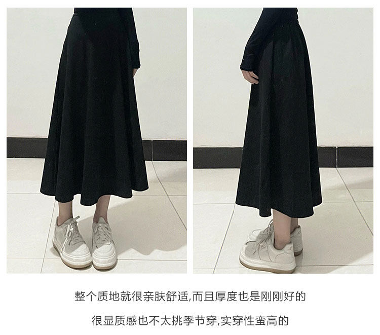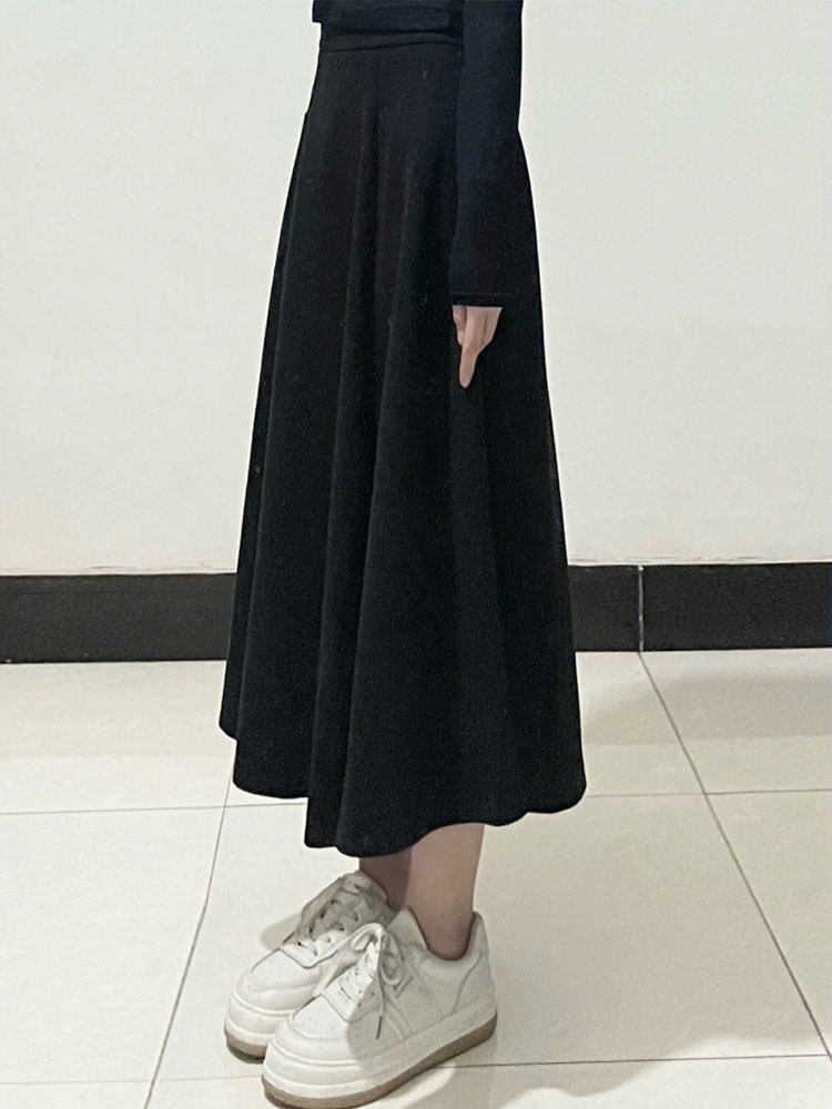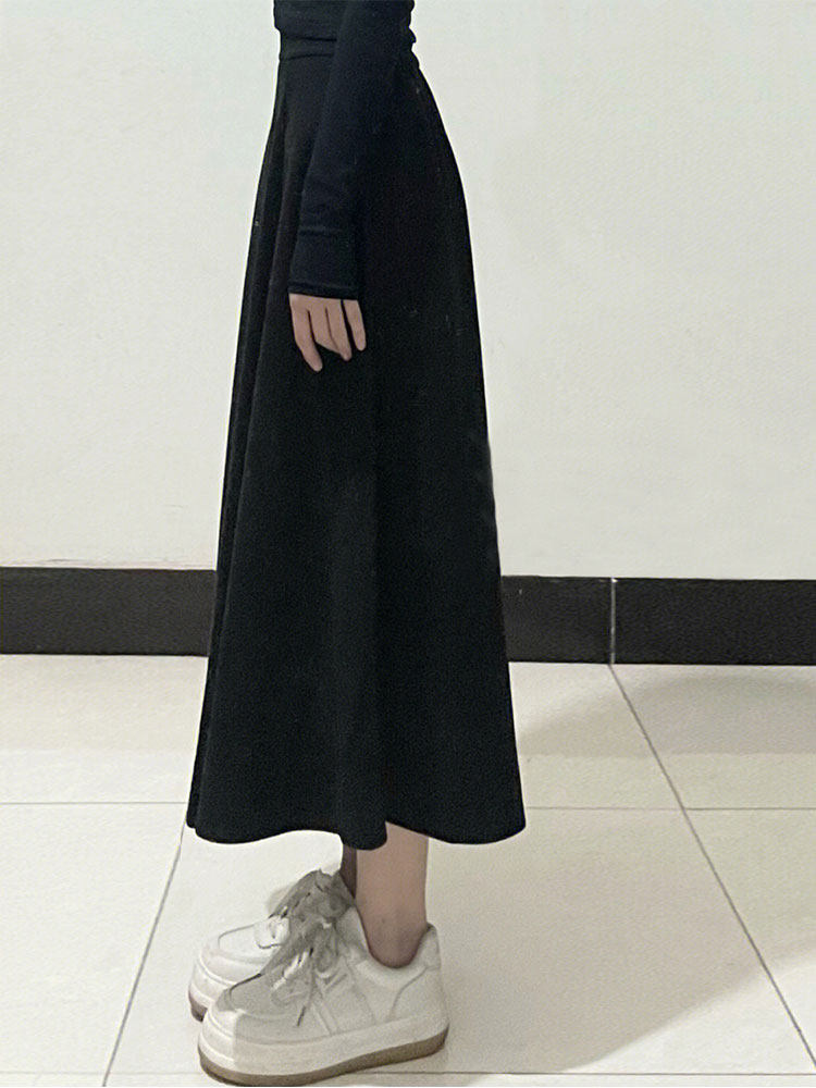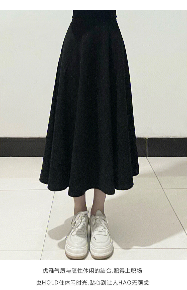 Черная шерстяная юбка, длинный свитер, для формы тела «груша», большой размер, средней длины, А-силуэт