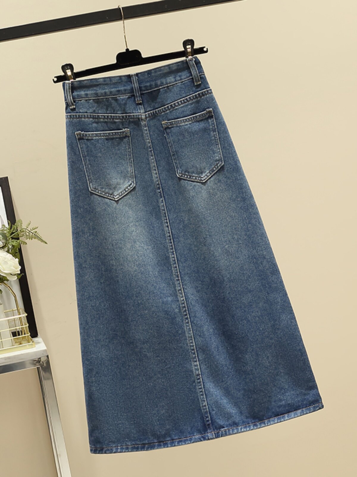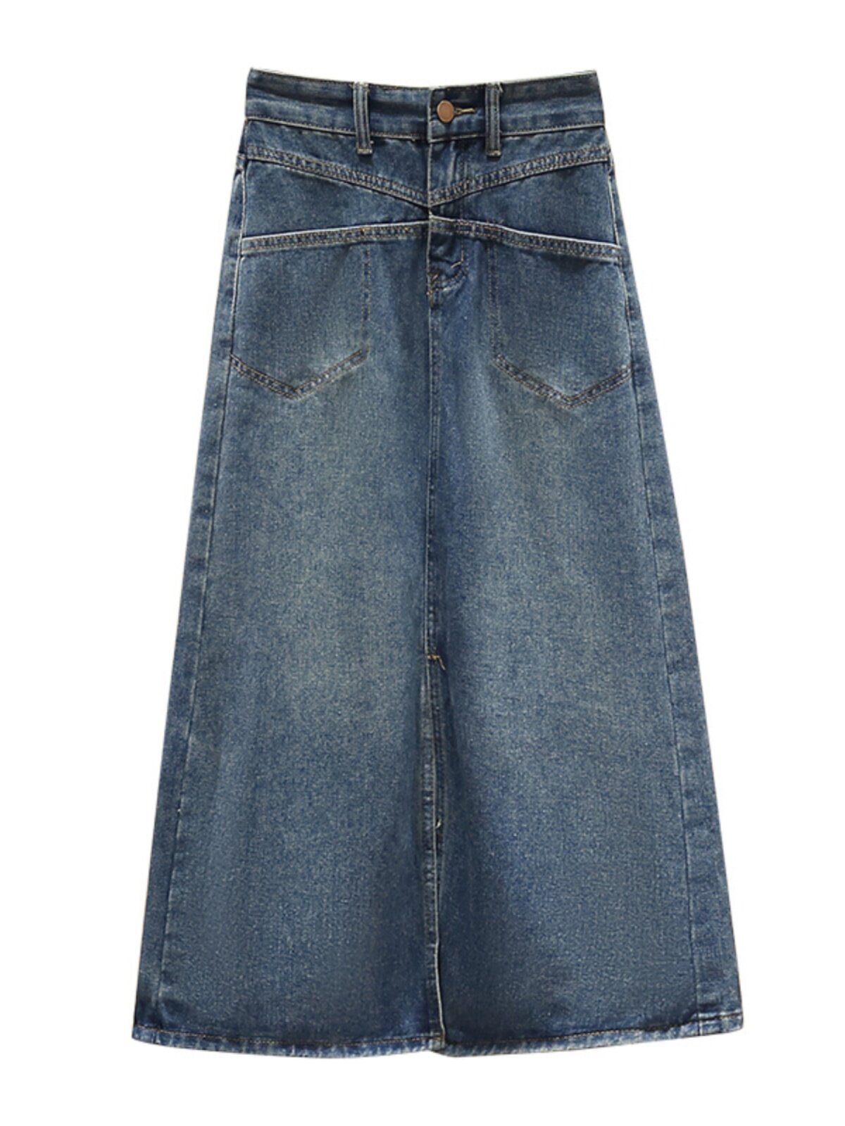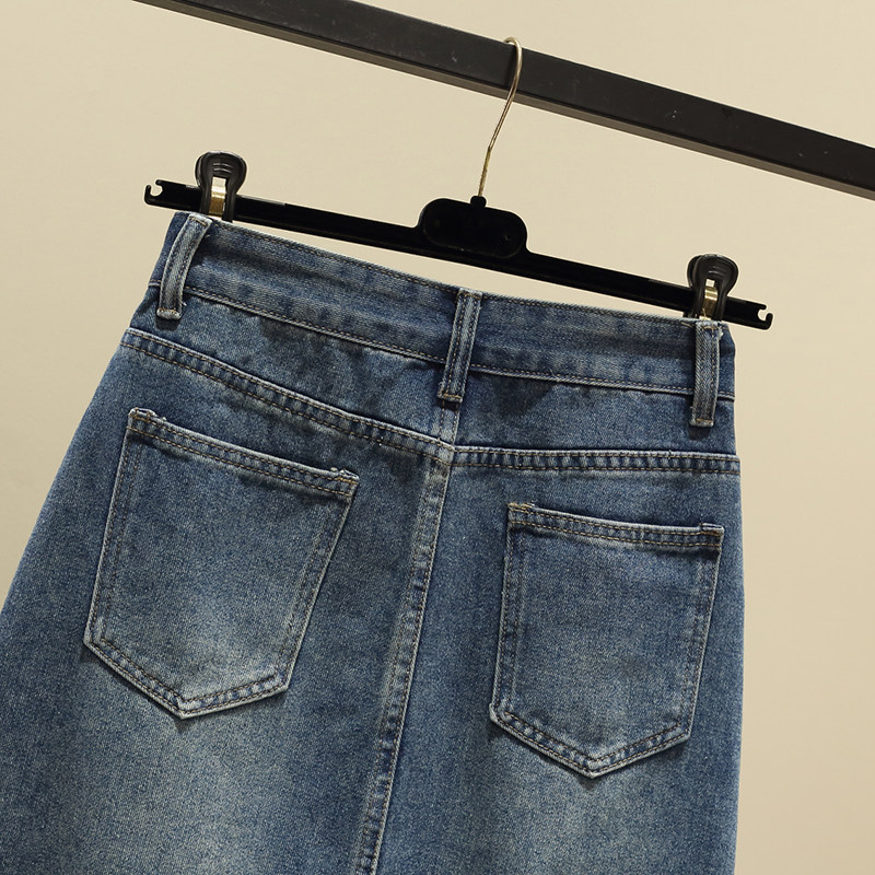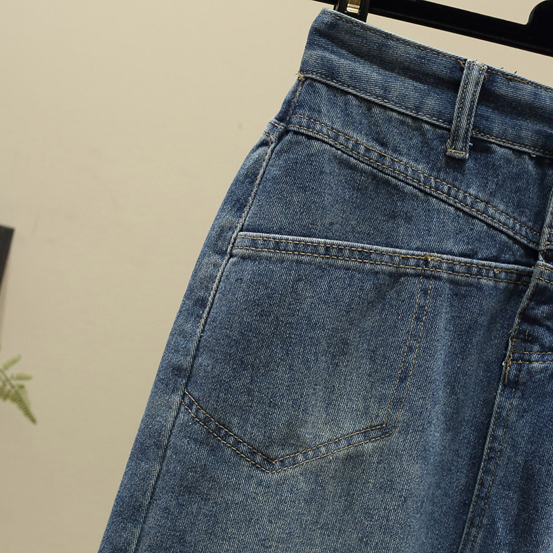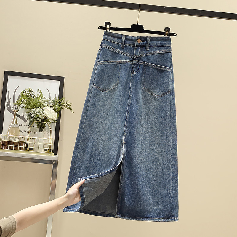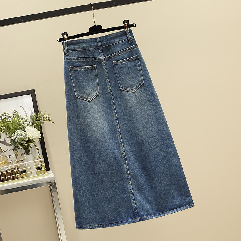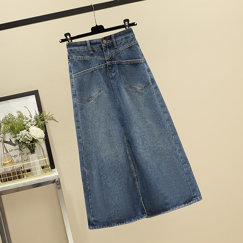 Ретро джинсовая демисезонная длинная юбка, высокая талия, подходит для полных девушек, большой размер, средней длины