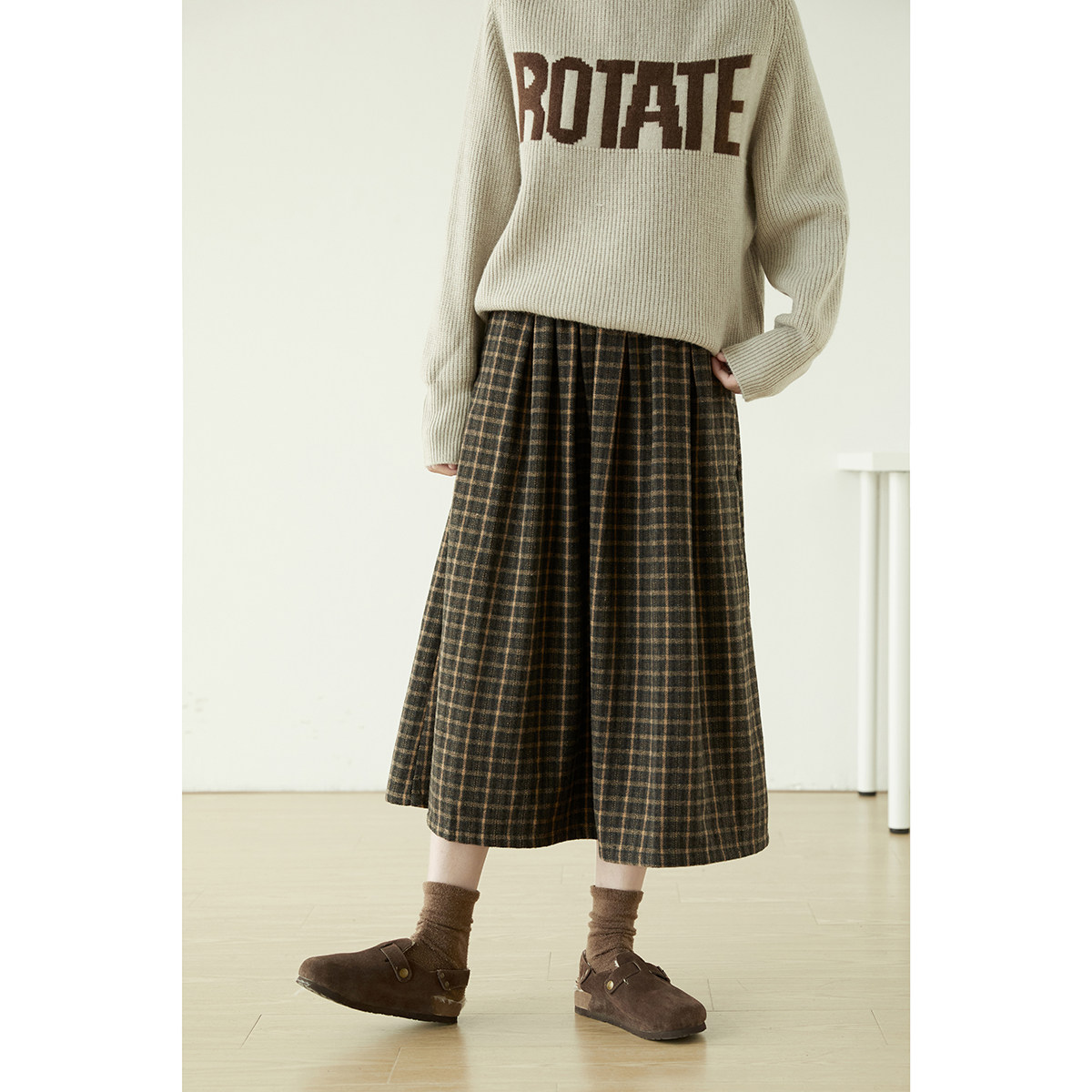 Осенняя длинная шерстяная юбка, городской стиль, средней длины, А-силуэт
