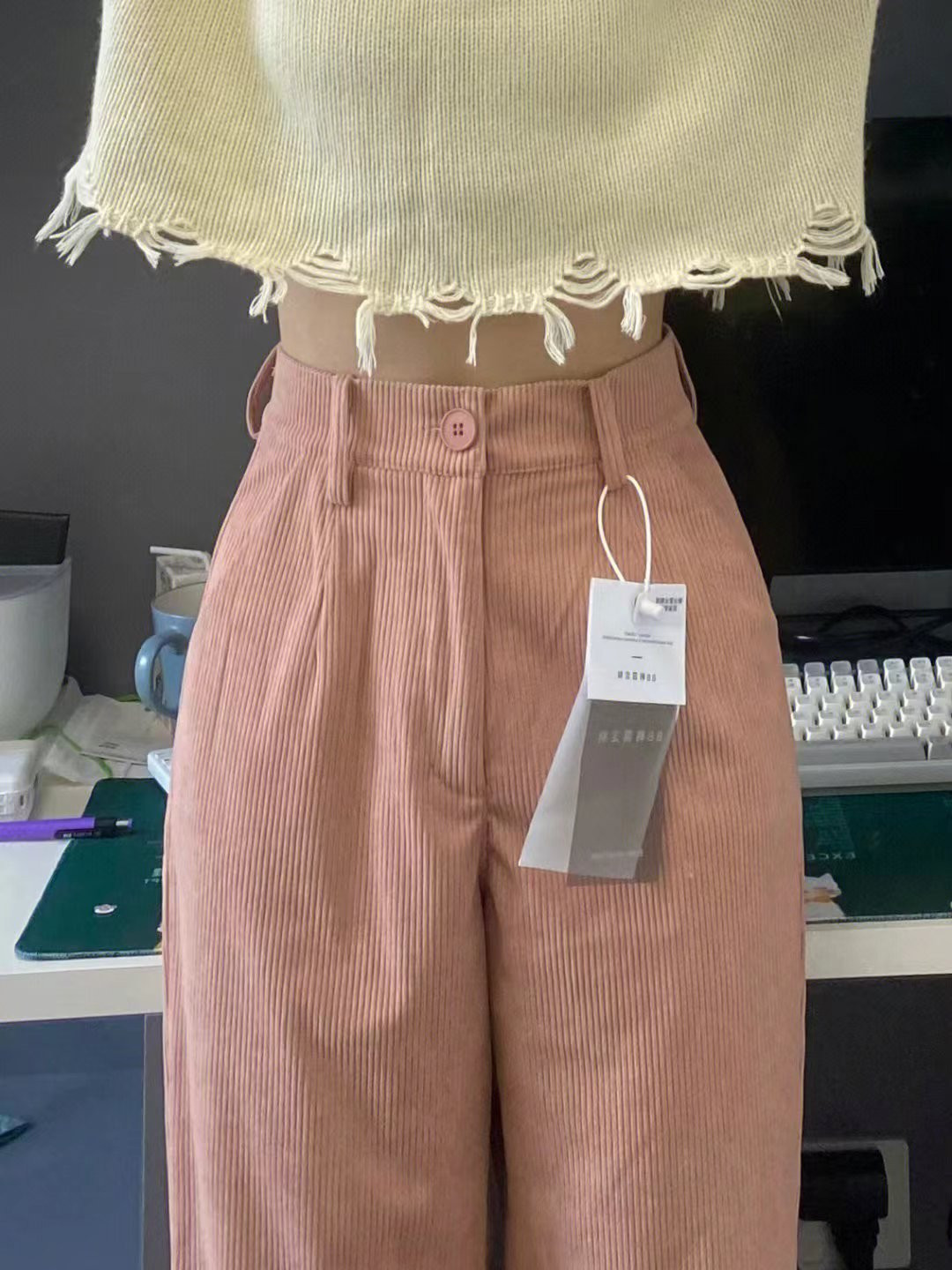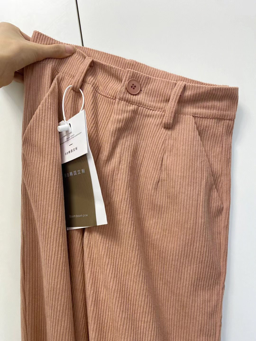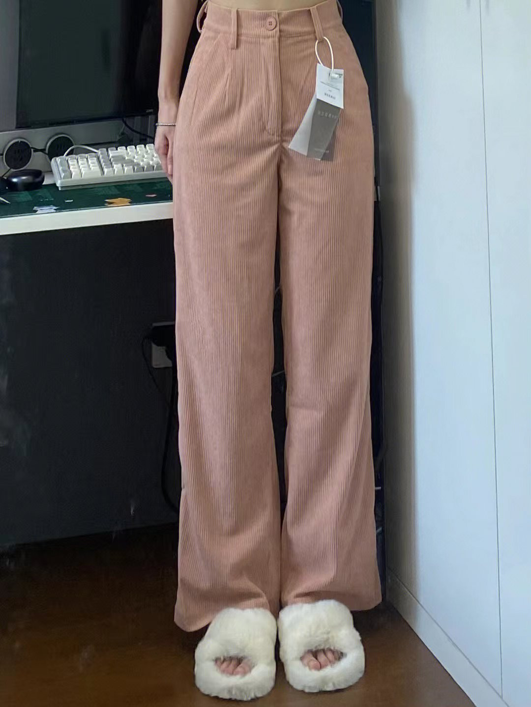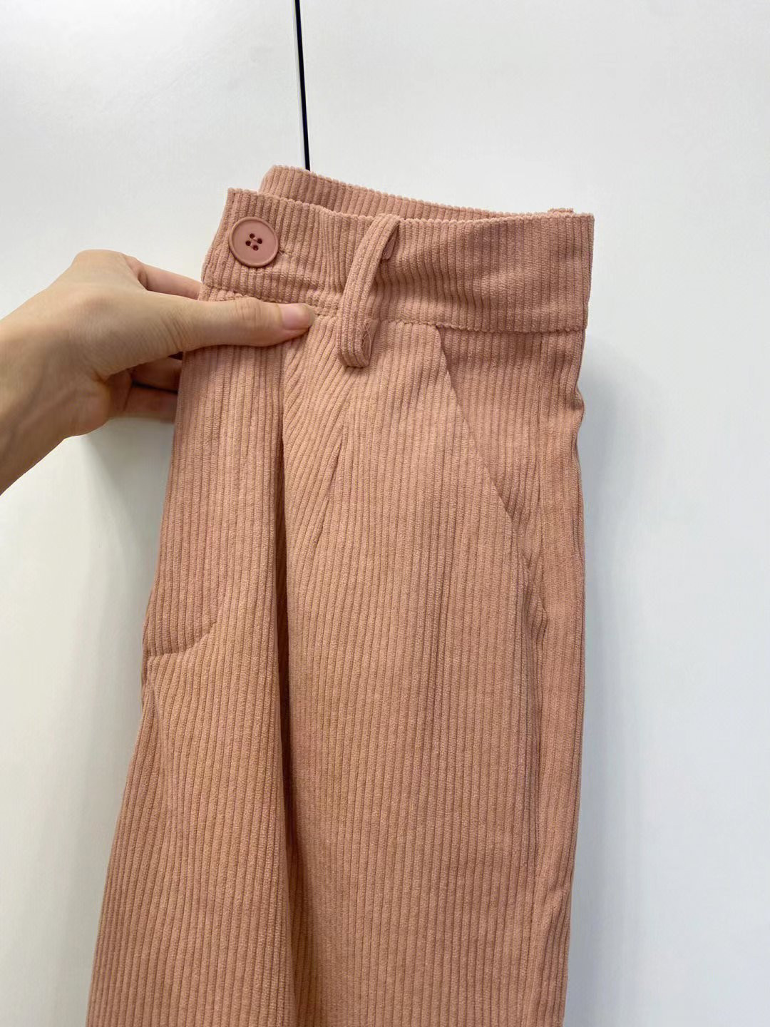 Розовые вельветовые демисезонные приталенные штаны, в американском стиле, свободный прямой крой, высокая талия
