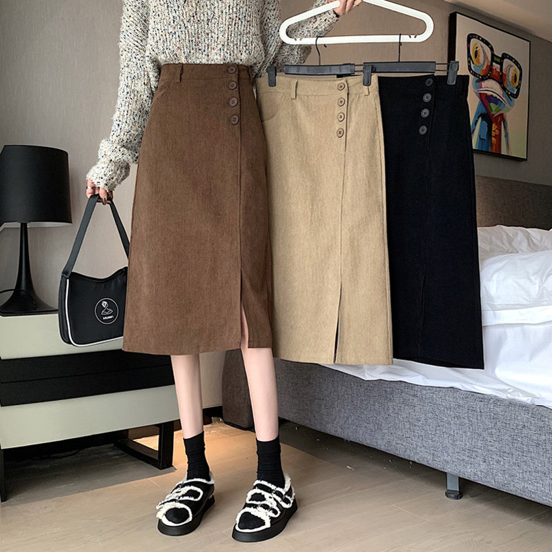 Приталенная весенняя вельветовая осенняя длинная юбка, высокая талия, средней длины, длина макси, А-силуэт
