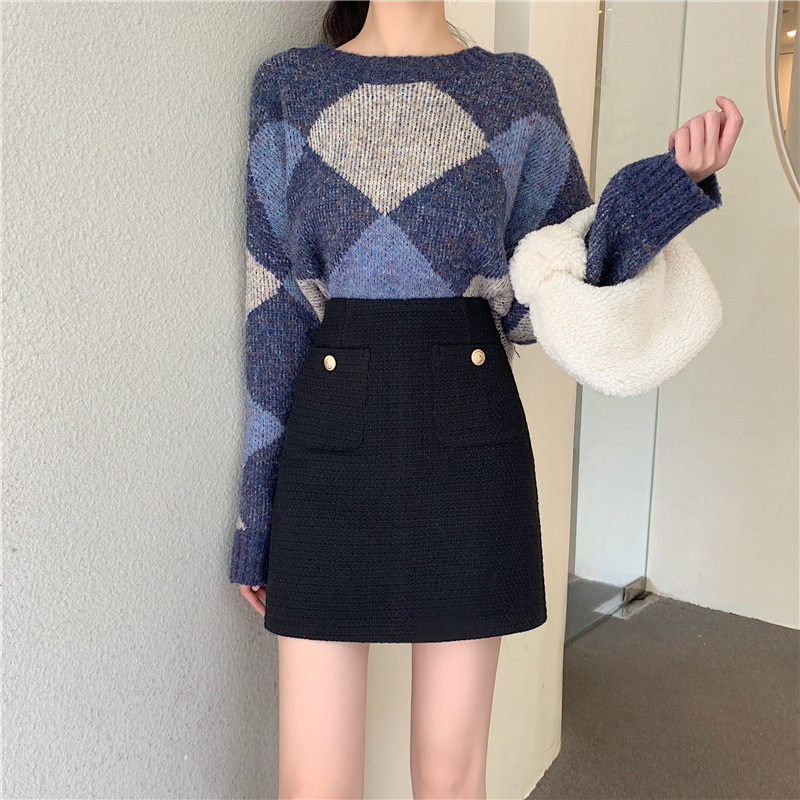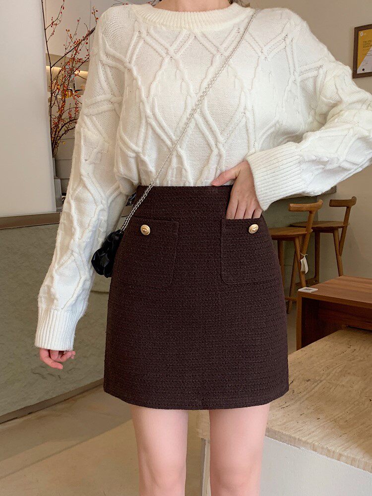 Шерстяная юбка, мини-юбка, в стиле Шанель, большой размер, высокая талия, А-силуэт