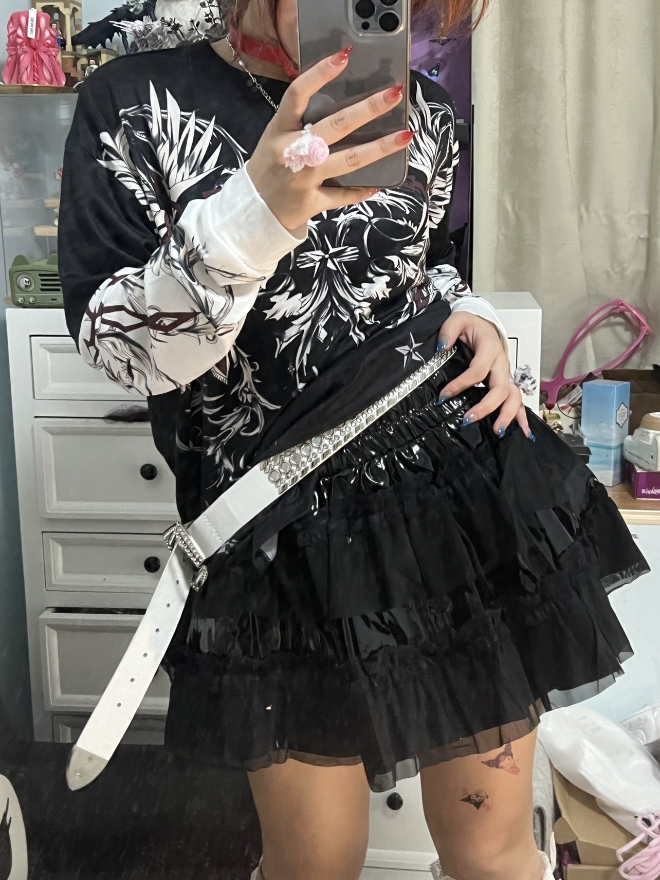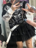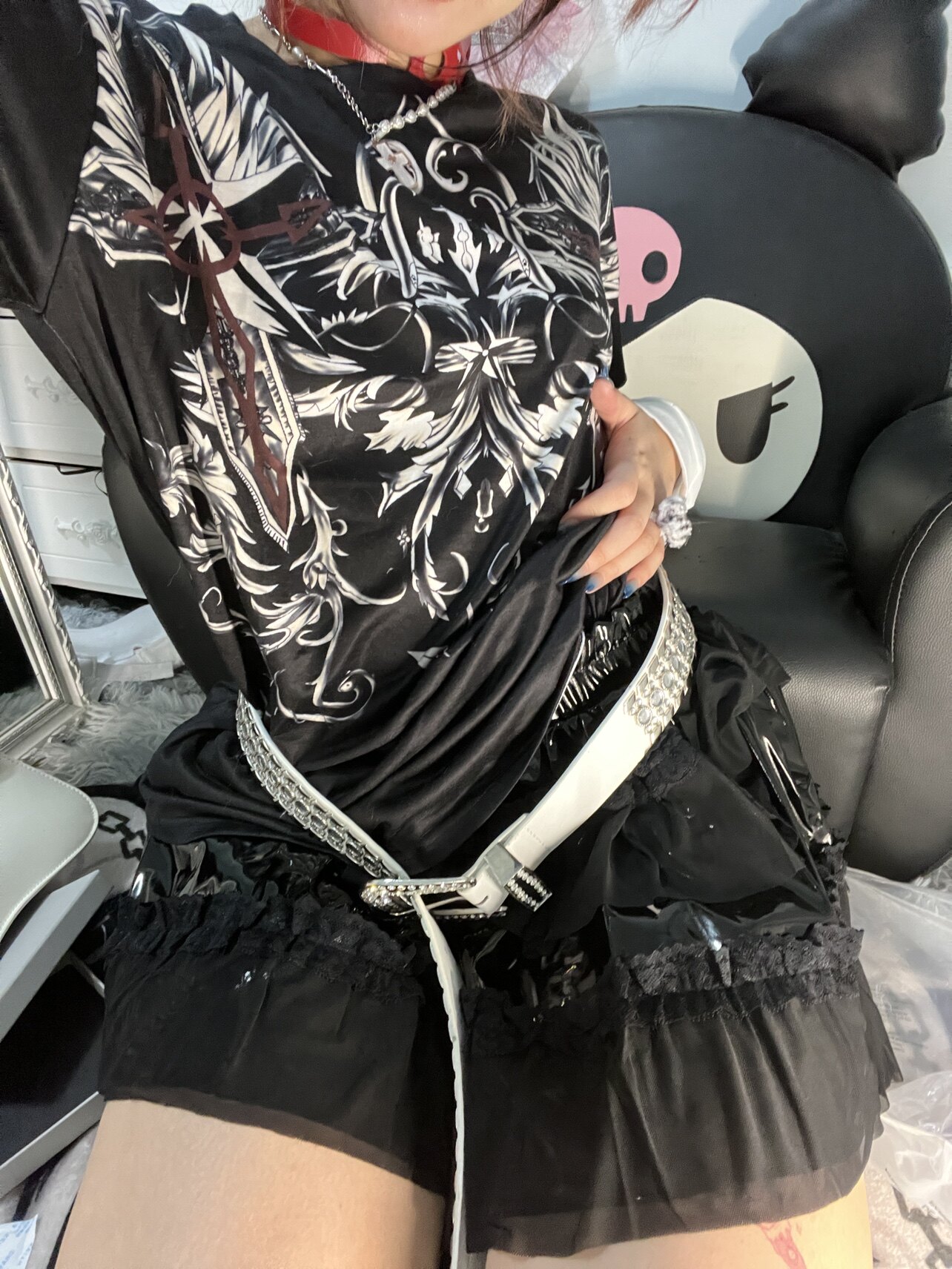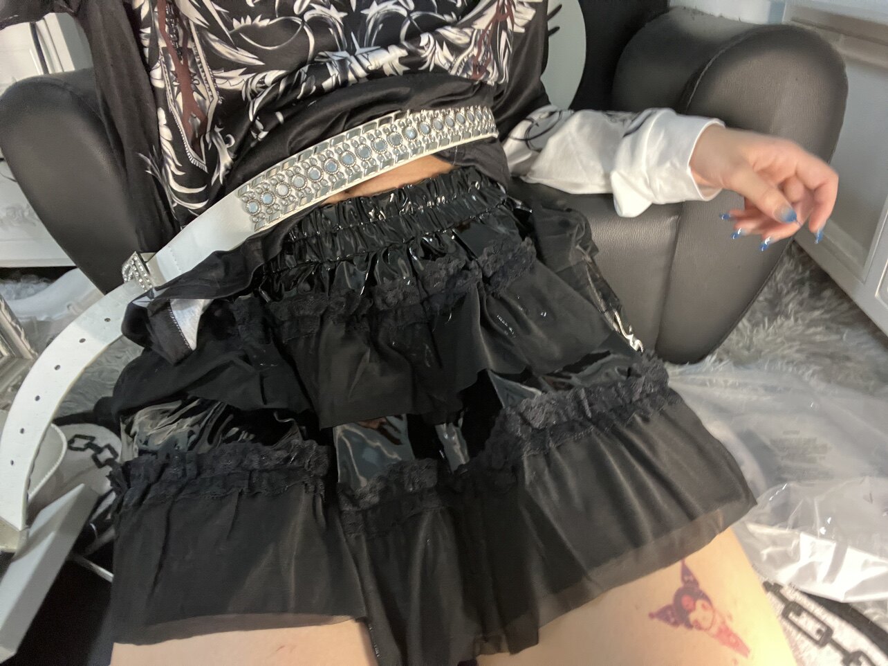 Патентный кожаный торт^… азиатская культура Y2K Панк Пантон Юбка Афмбар Черная сетчатая плеска