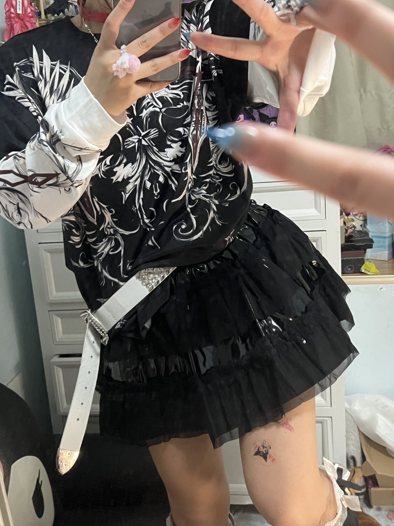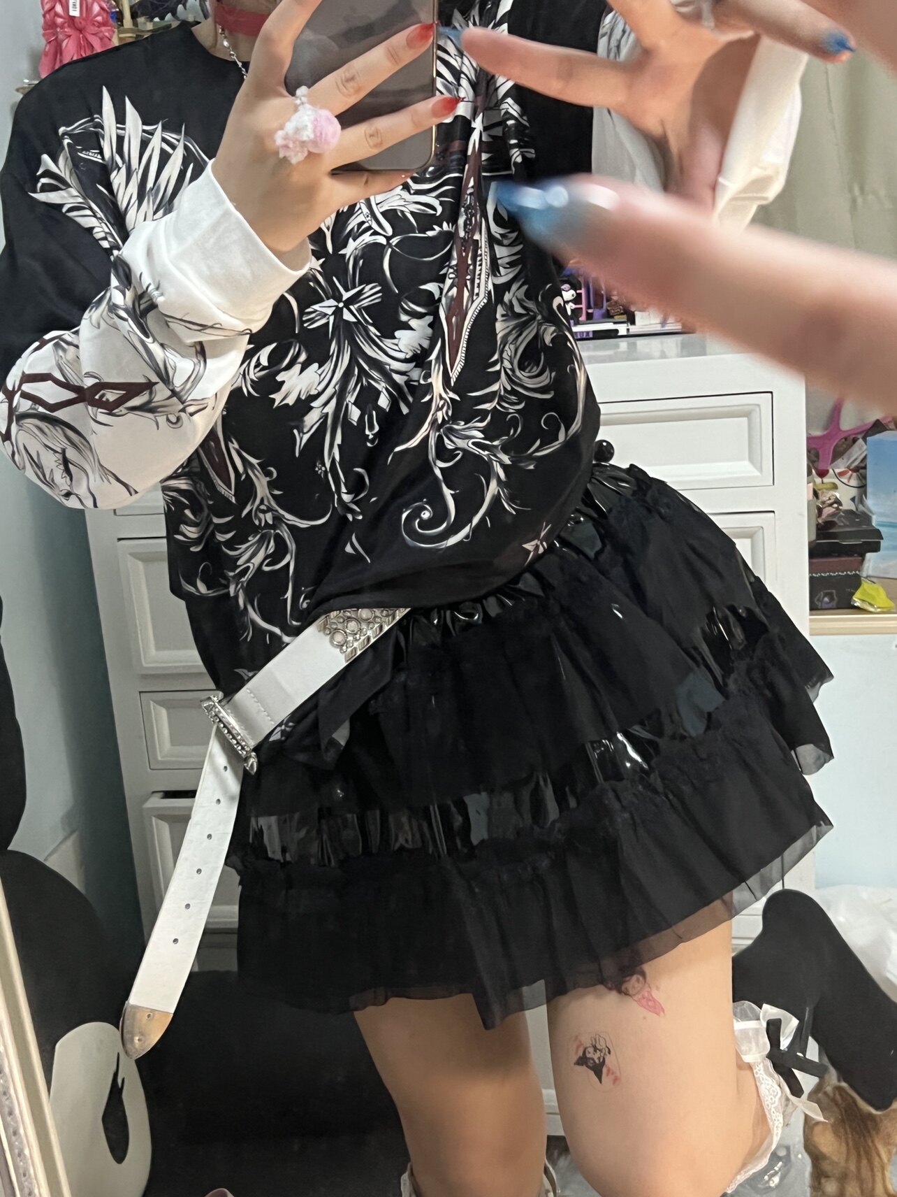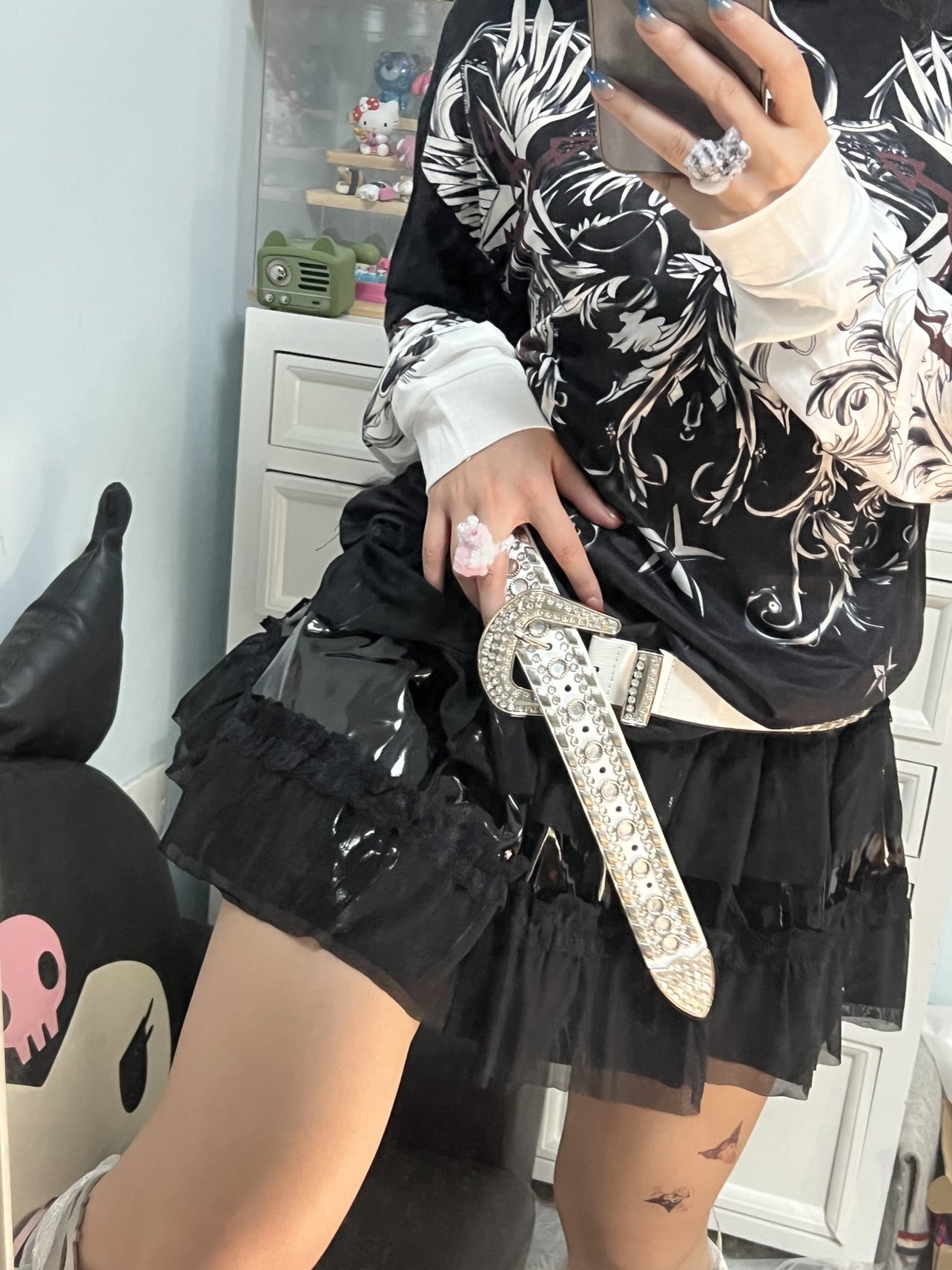 Патентный кожаный торт^… азиатская культура Y2K Панк Пантон Юбка Афмбар Черная сетчатая плеска