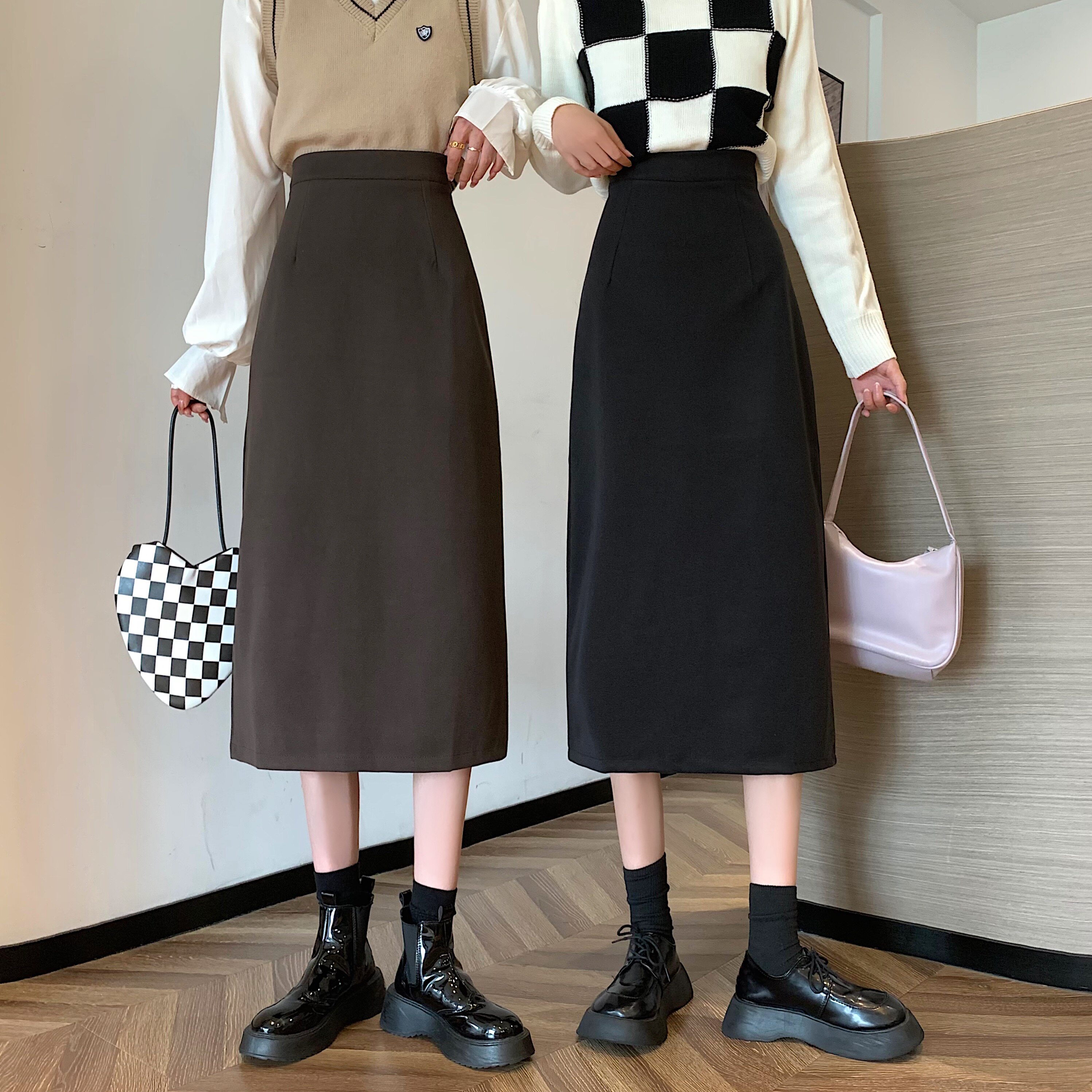 Темное шерстяное пальто, демисезонная юбка в складку, длинная юбка, А-силуэт, подходит для подростков
