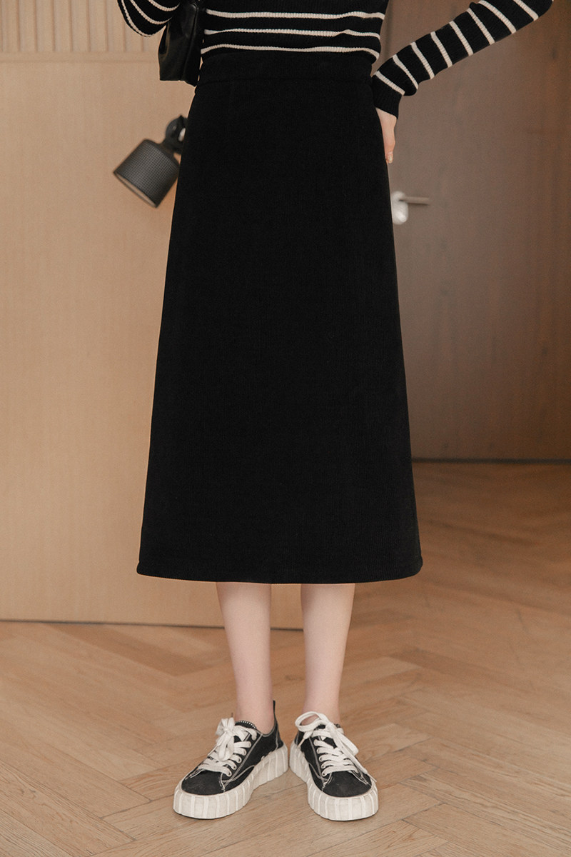 小谷粒 Небольшой черный пуховик, дизайнерская флисовая длинная юбка, изысканный стиль, коллекция 2022, тренд сезона