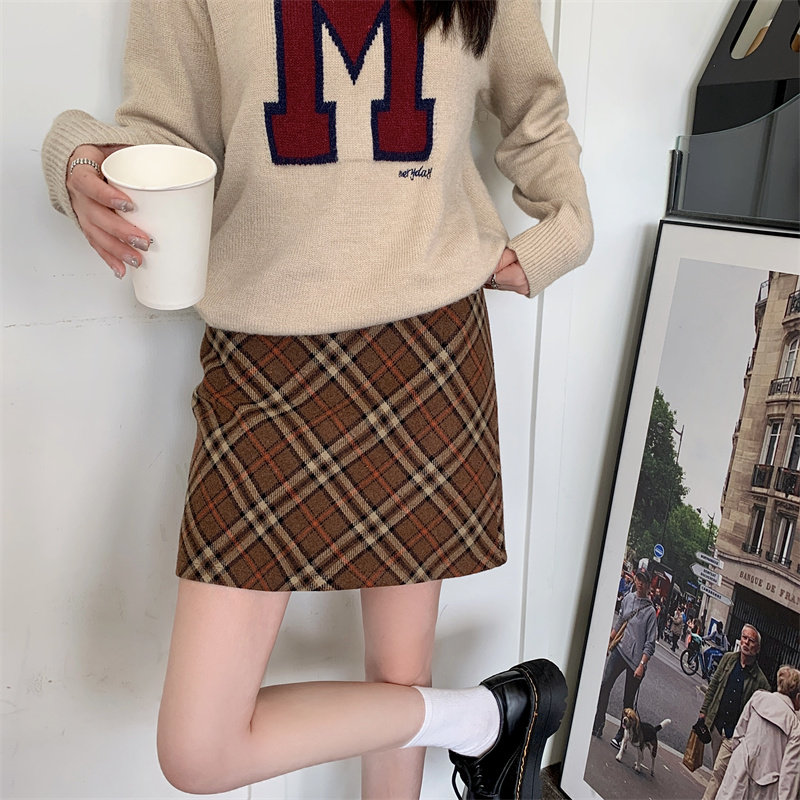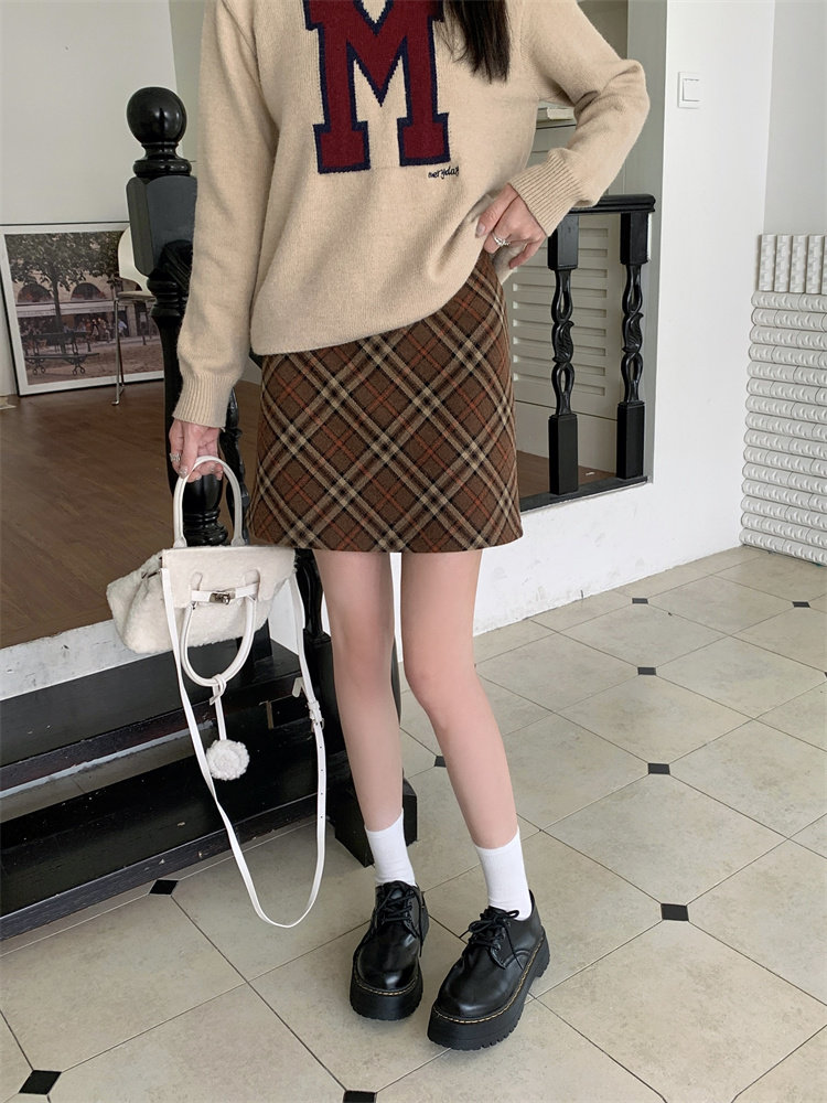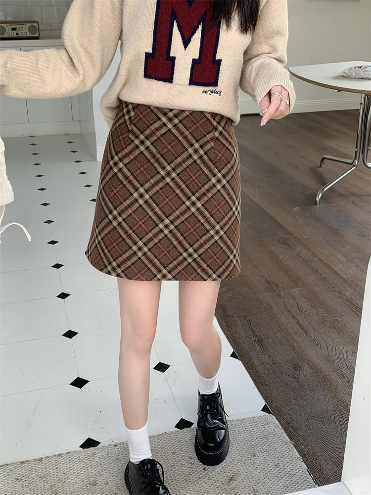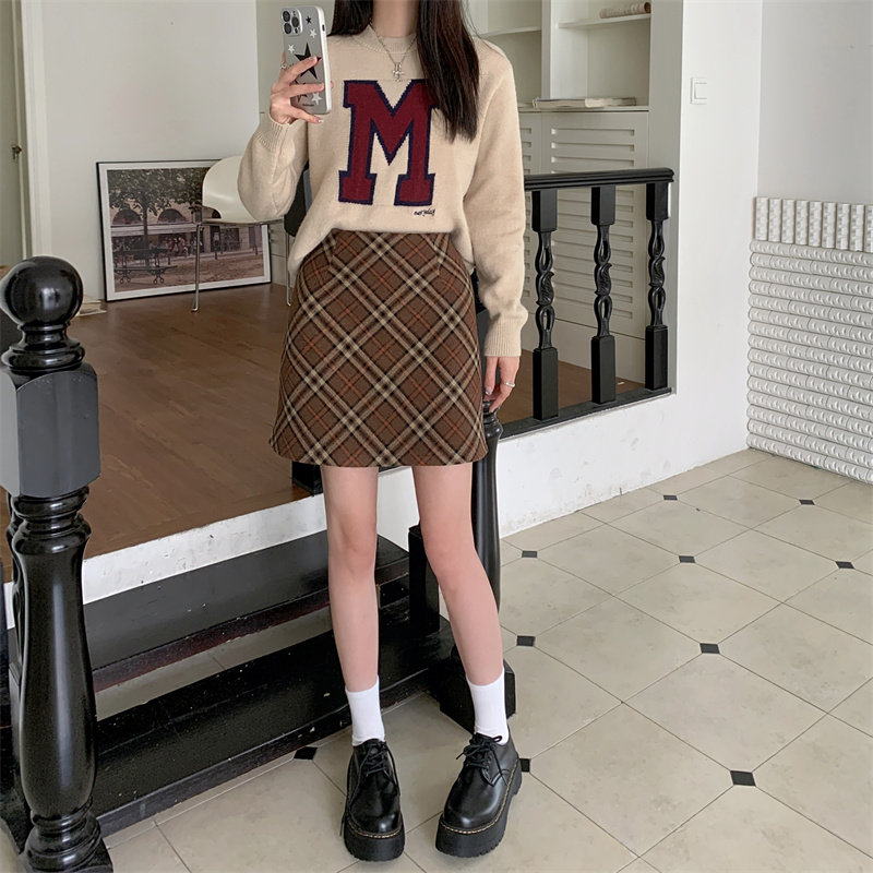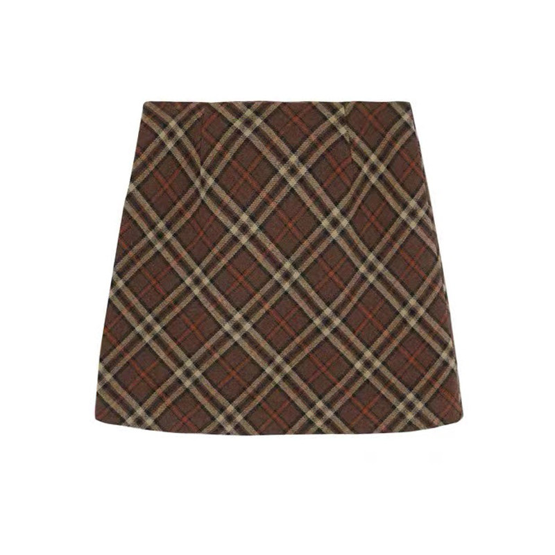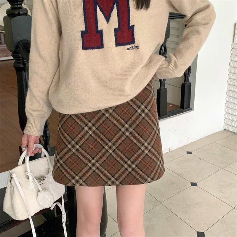 Шерстяная коричневая демисезонная юбка, в корейском стиле, А-силуэт